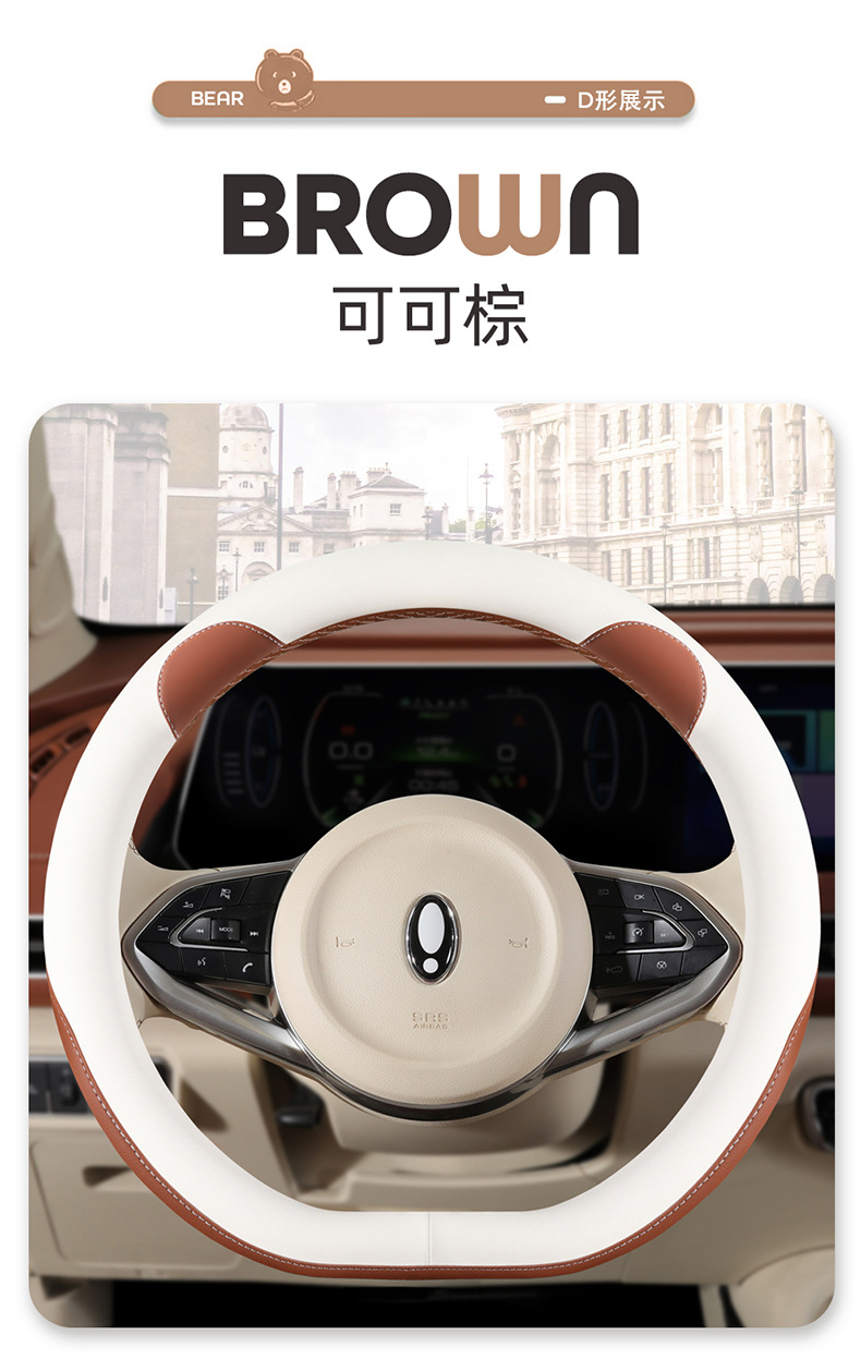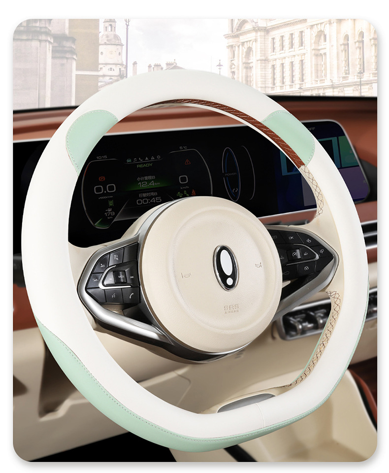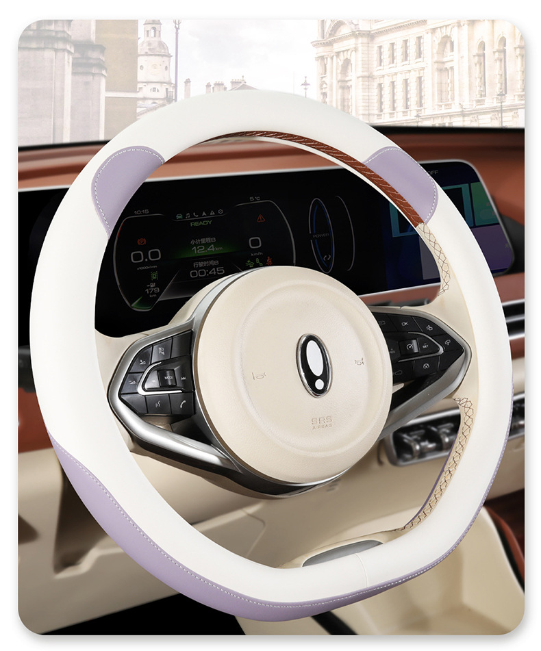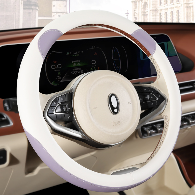 자동차 핸들 커버 사계절 유니버설 오일러 굿 캣 자동차 핸들 커버 인테리어 개조 내마모성 미끄럼 방지 가죽 보호 커버