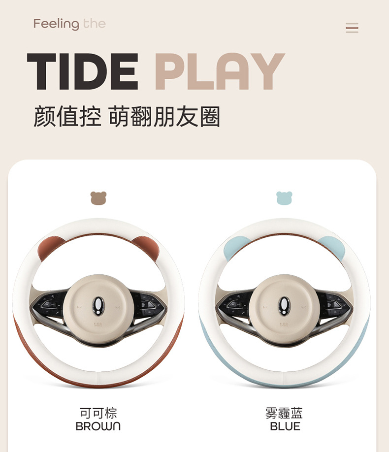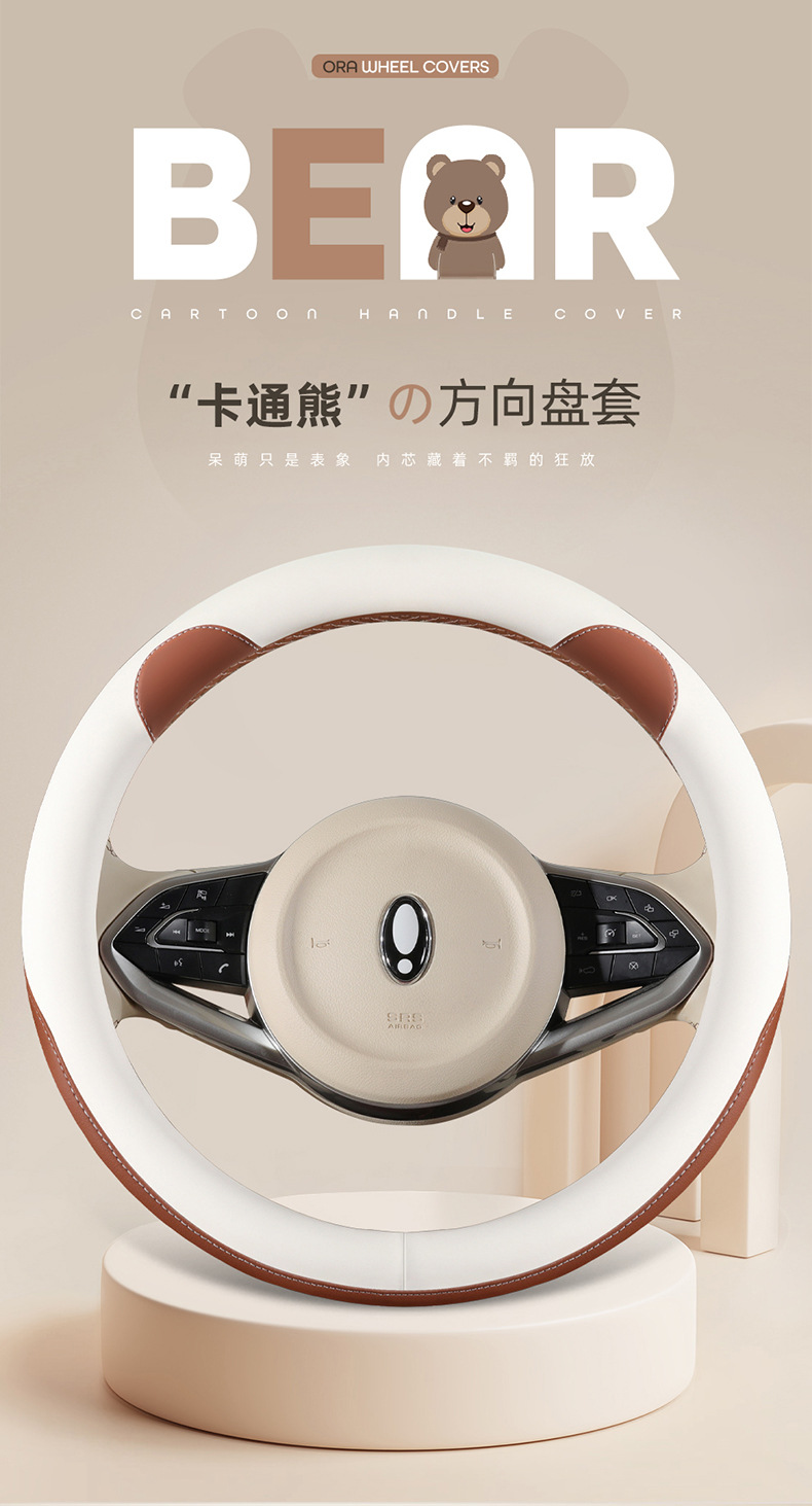 자동차 핸들 커버 사계절 유니버설 오일러 굿 캣 자동차 핸들 커버 인테리어 개조 내마모성 미끄럼 방지 가죽 보호 커버스토어 가기