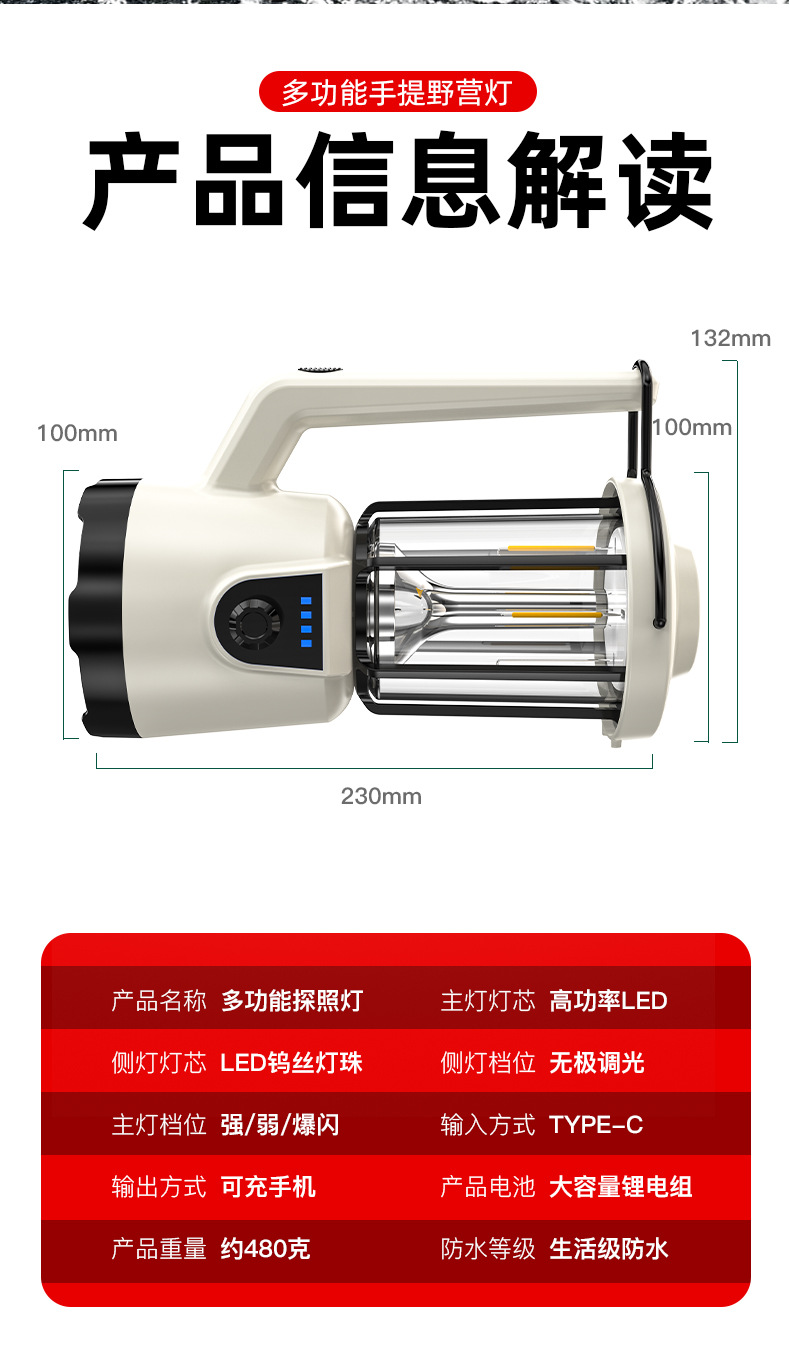 국경 새로운 야외 캠핑 조명 대용량 손전등 휴대용 충전식 USB 교수형 텐트 캠핑 조명