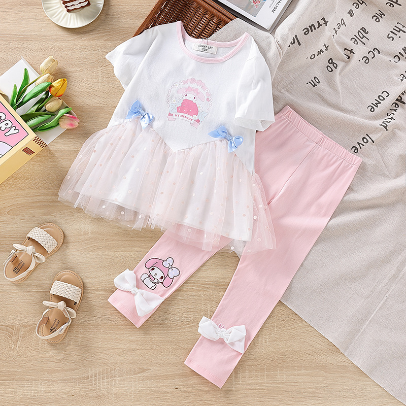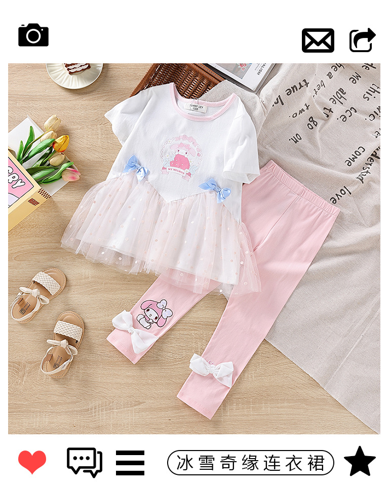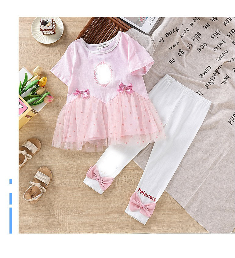 여아 여름 세트 공주 아이샤 메쉬 반팔 티셔츠 아기 바지 중소 어린이 달콤하고 귀여운 투피스 세트