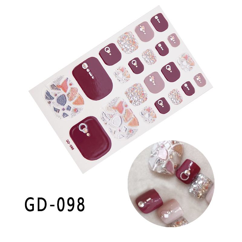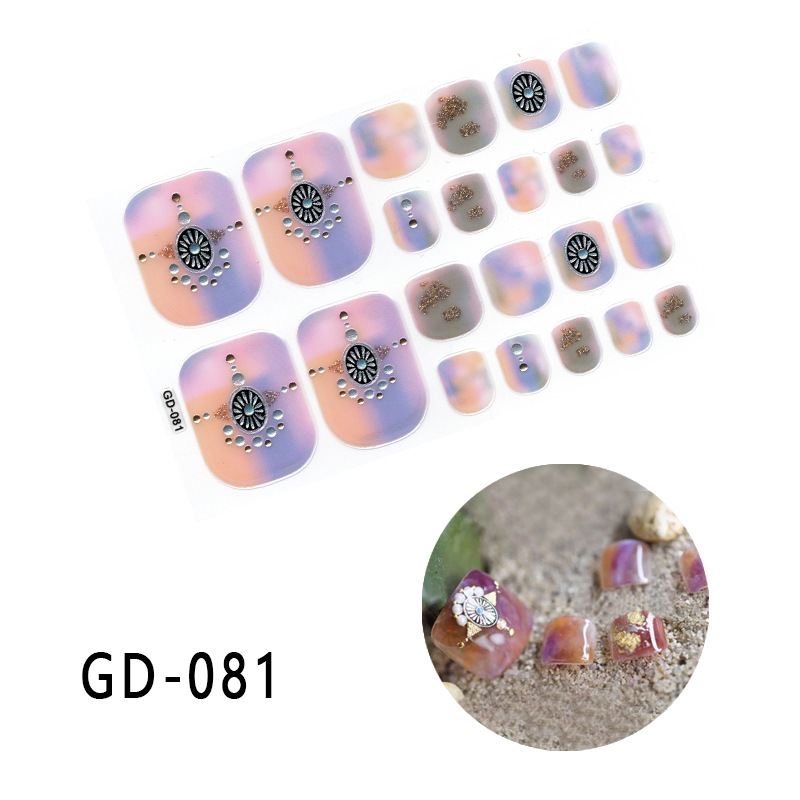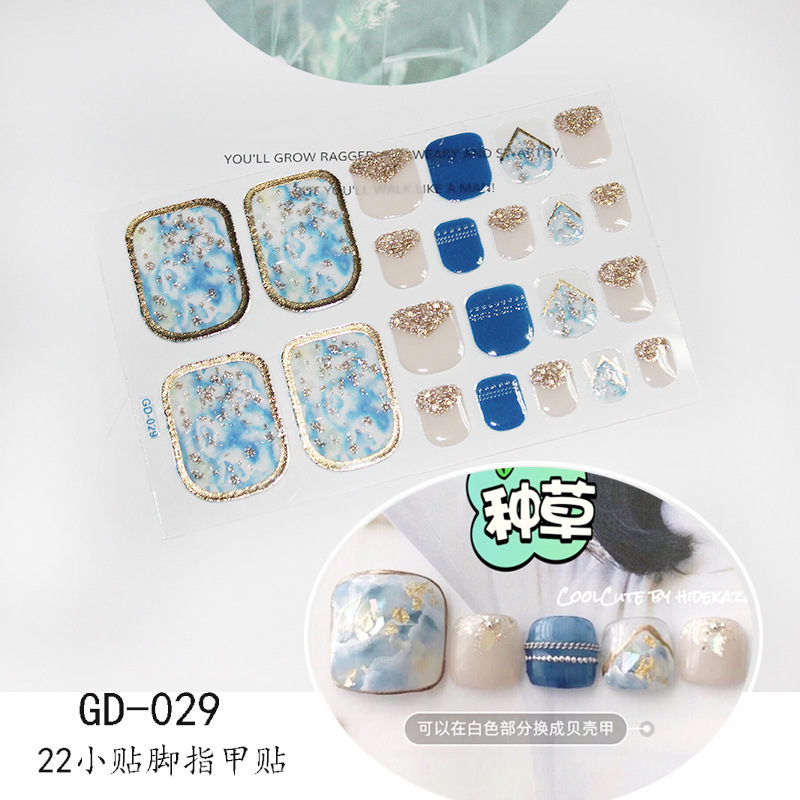 새로운 네일 아트 스티커 발 스티커 22 전체 스티커 접착제 없음 베이킹 램프 네일 아트 스티커 국경 네일 아트 발 스티커 도매