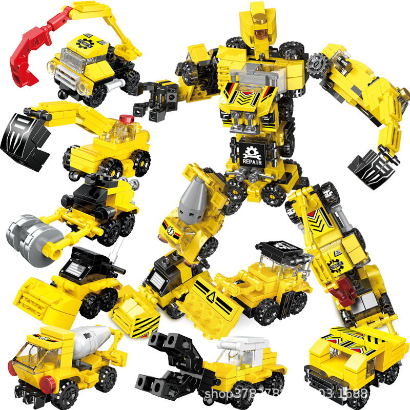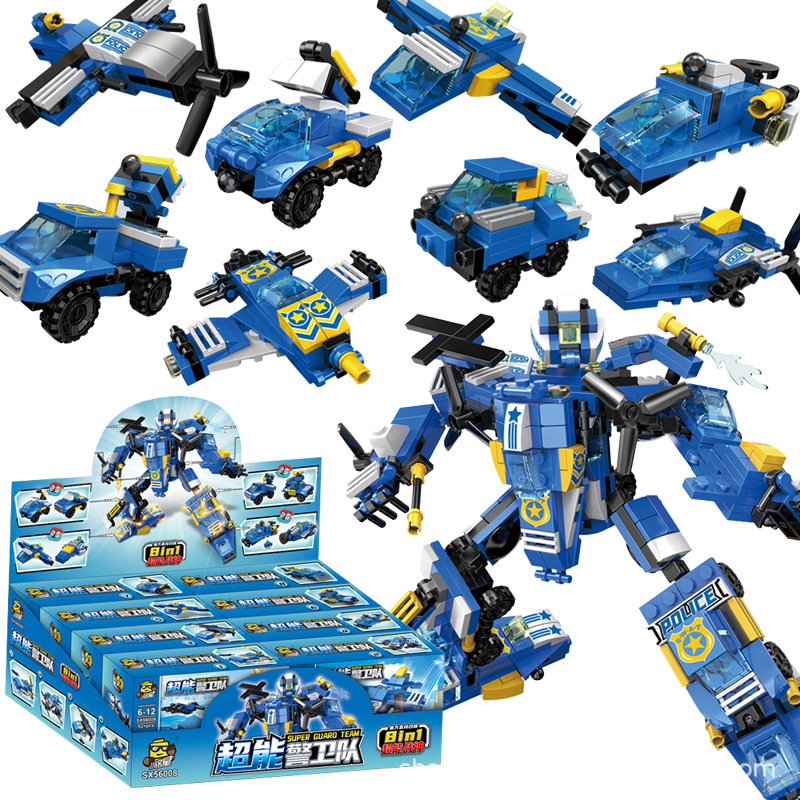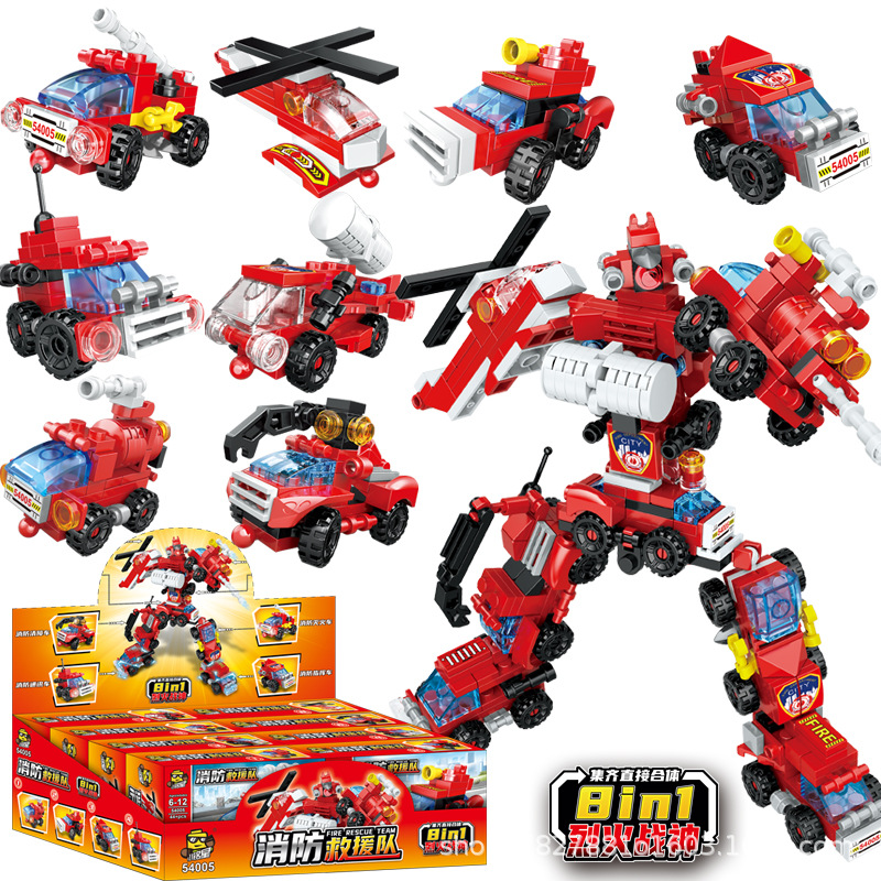 Xiaomingxing 퍼즐 어린이 건물 블록 장난감 중간 상자 작은 입자 화재 보호 공학 변형 적합 로봇스토어 가기