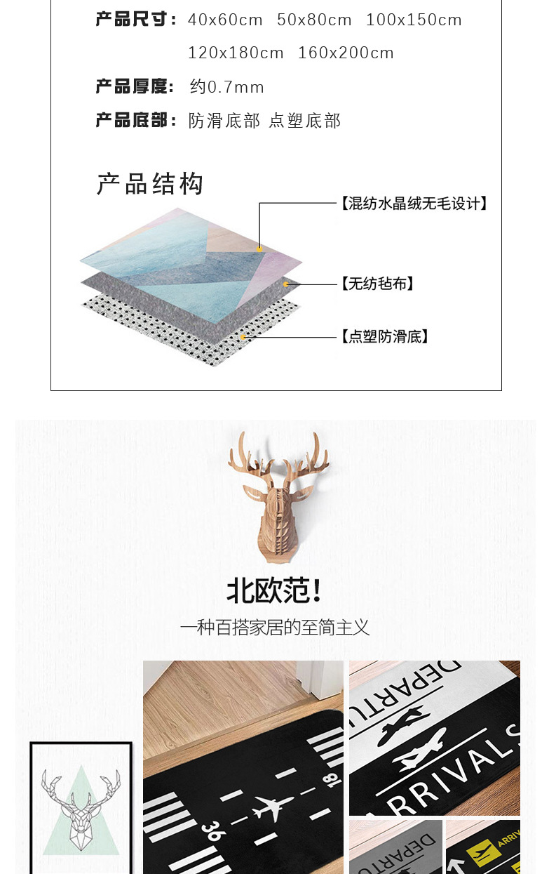 맞춤형 미끄럼 방지 홈 스폰지 바닥 매트 가정용 화장실 미끄럼 방지 바닥 매트를 나타내는 북유럽 간단한 항공기스토어 가기