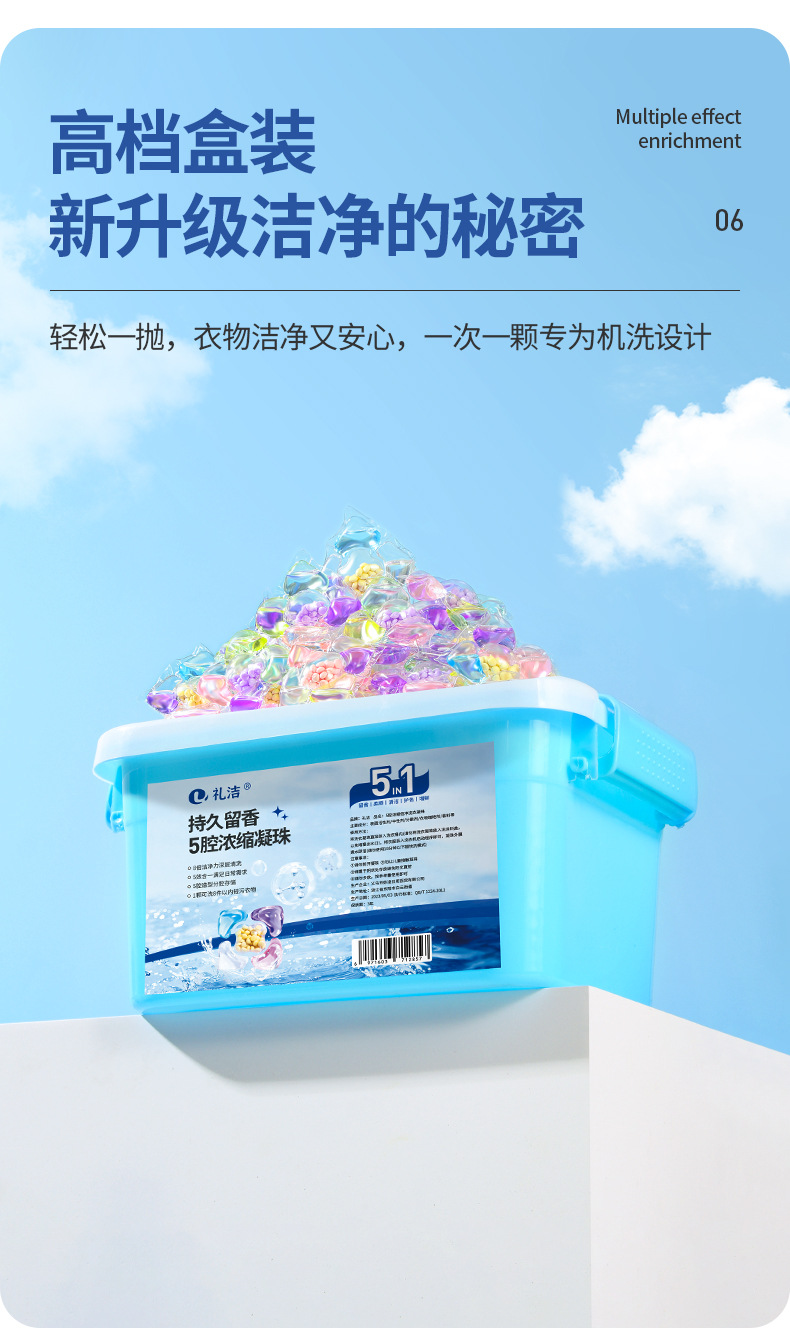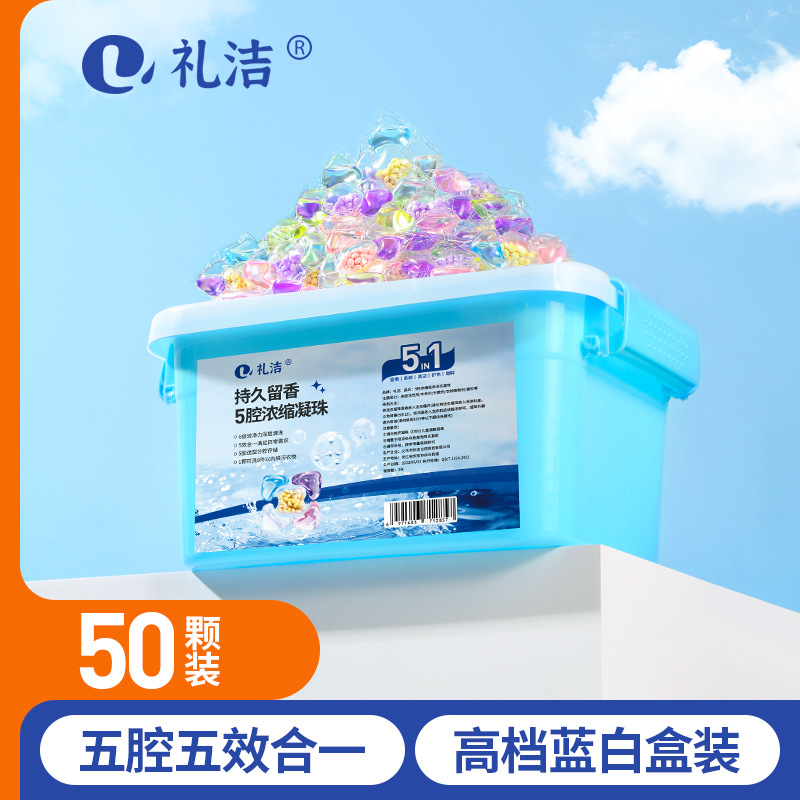 5-캐비티 10g 박스형 50 세탁 비드 깨끗한 보호 의류 지속적인 향기 세탁 비드 세탁 비드스토어 가기