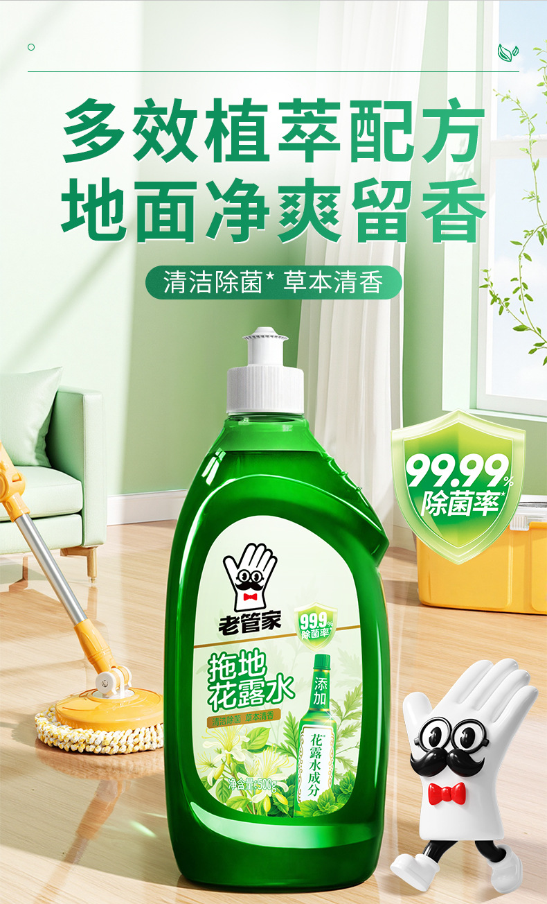 라오 관자(老管家) 신선하고 오래 지속되는 향의 바닥 청소용 꽃향수, 가정용 타일 및 나무 바닥 청소제, 향기로운 탈취제