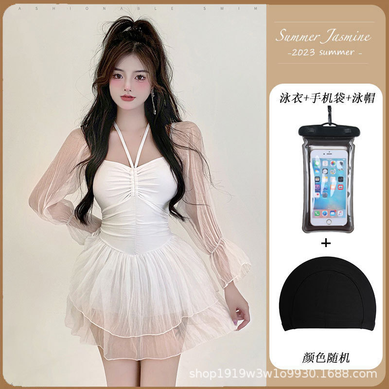 • 흰색 수영복 + 휴대폰 가방 + 수영 모자 + B 실리콘 가슴 패드