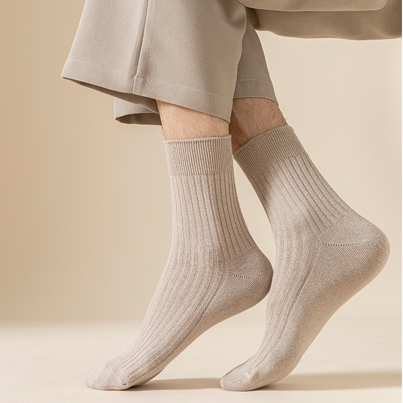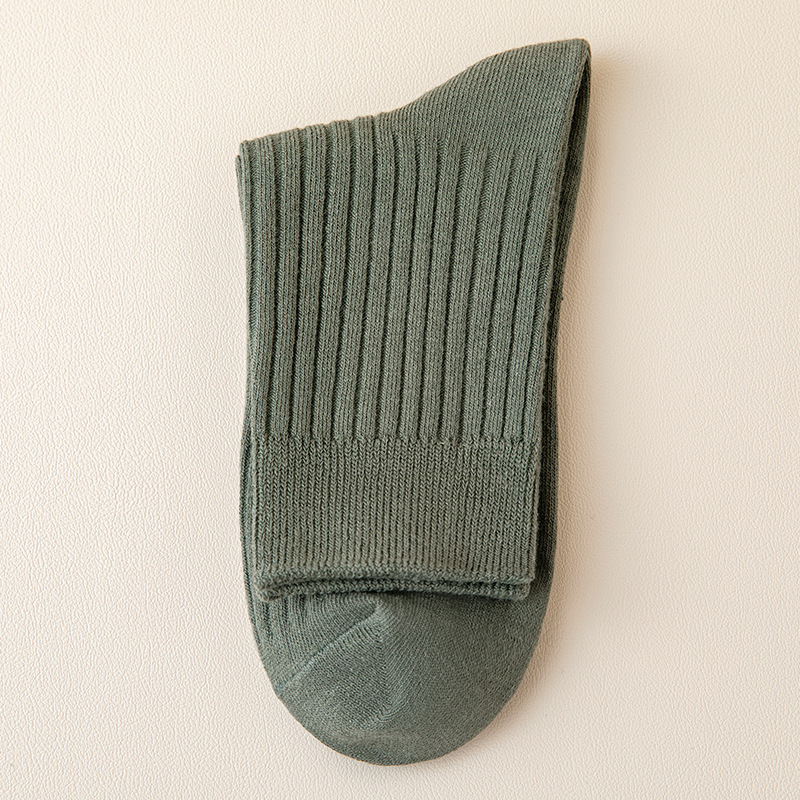 봄과 가을 새로운 남성용 단색 세로 스트립 중간 양말 남성 캐주얼 땀 흡수 통기성 모든 매치 비즈니스 남성용 면 양말