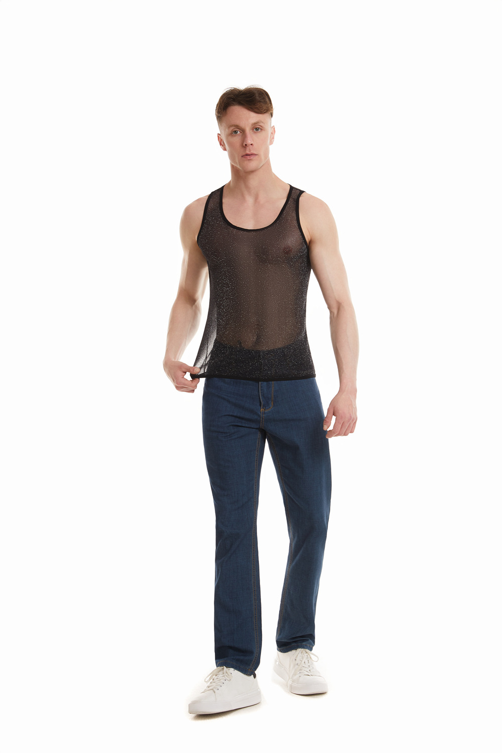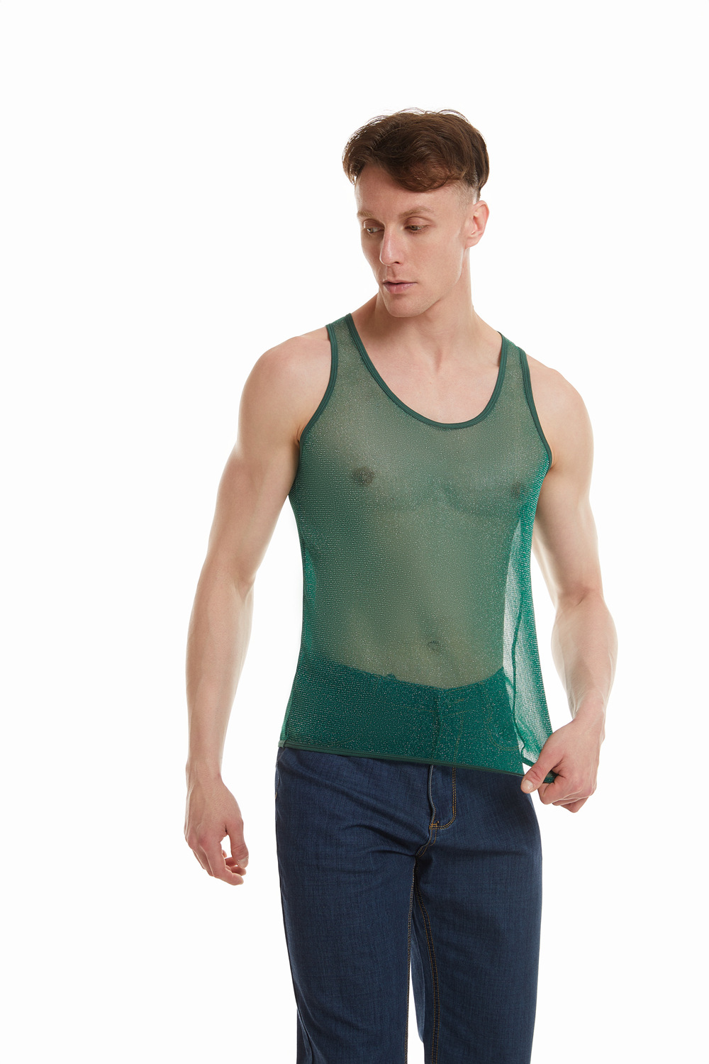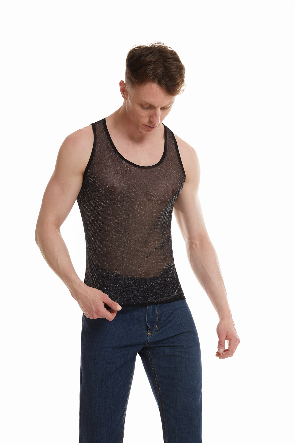 남성을위한 menssexi 웨스트 코스트 미국 힙합 무거운 빛나는 투명 꽉 스포츠 피트니스베이스 조끼스토어 가기