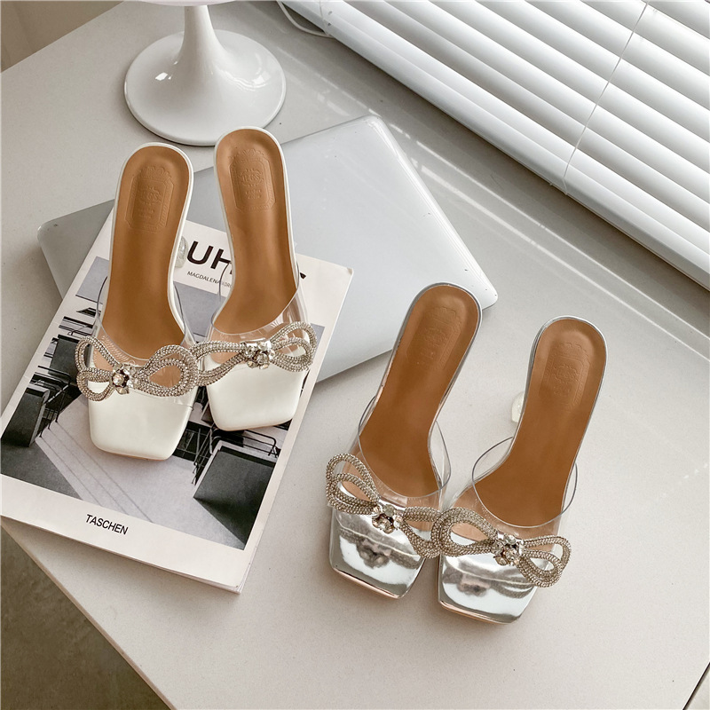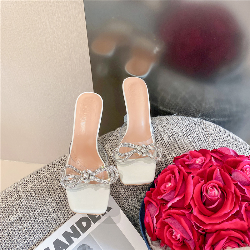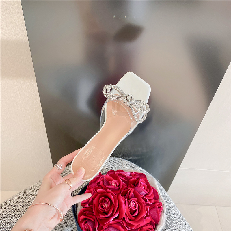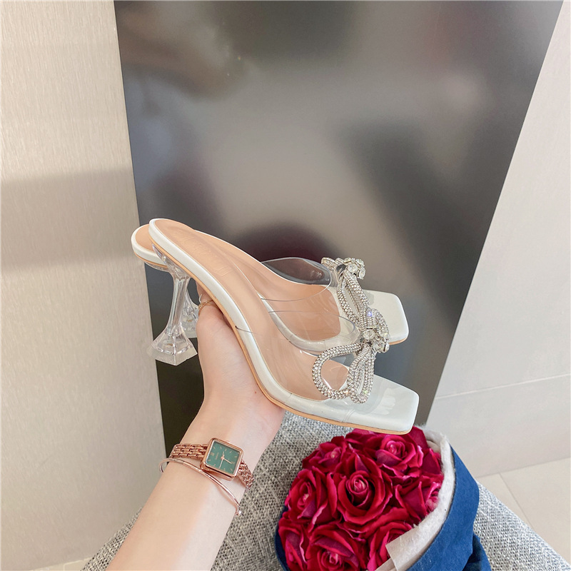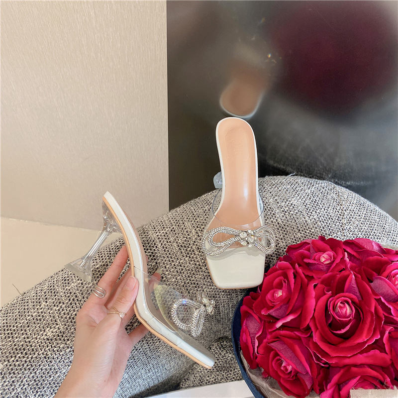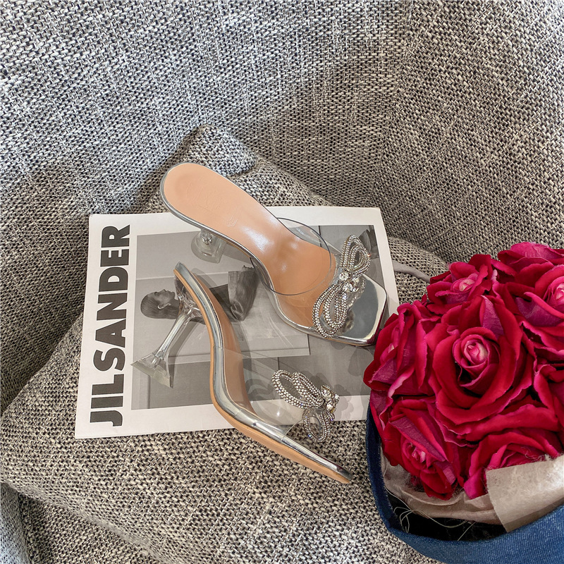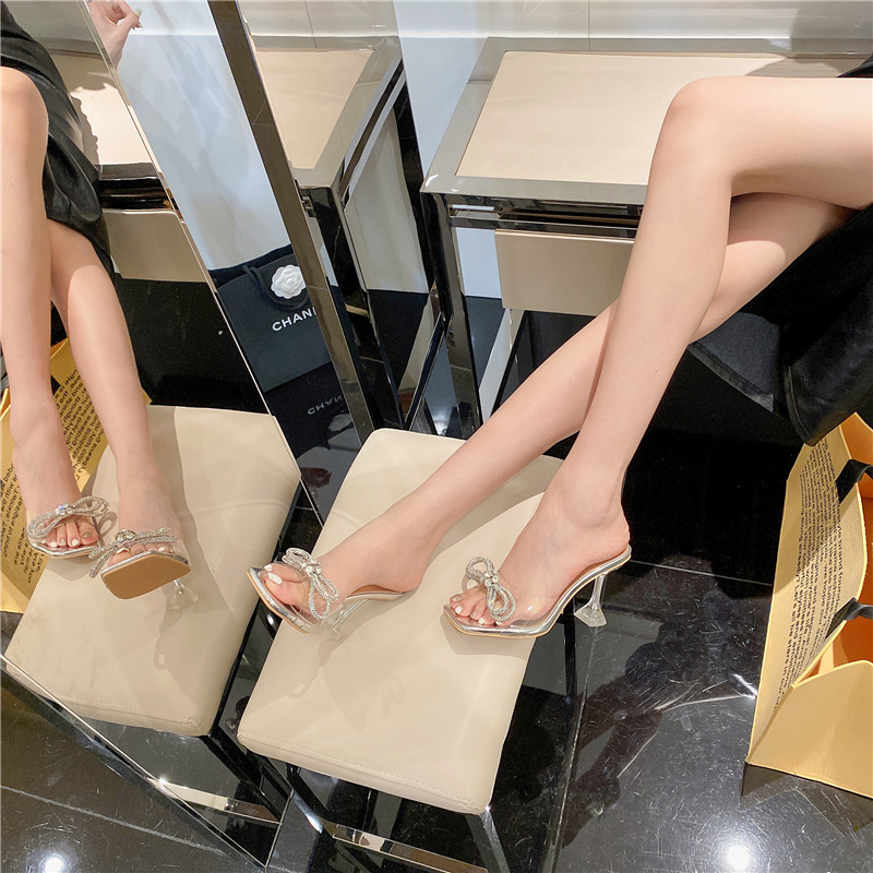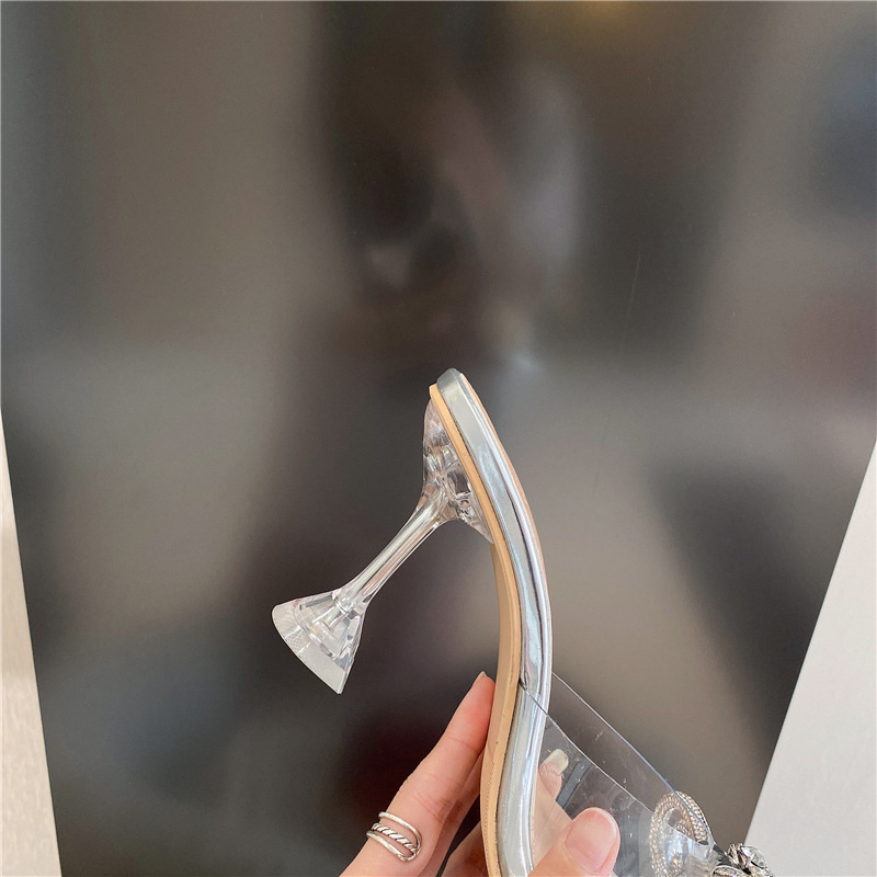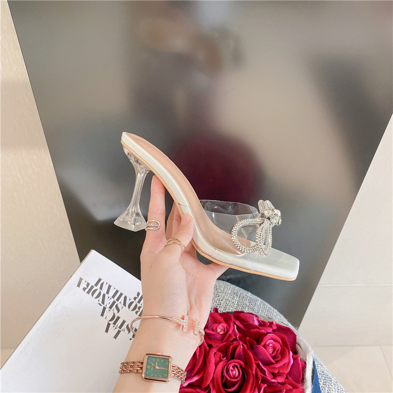 2025 여름 요정 스타일 리본 장식 크리스탈 투명 힐 하이힐 샌들 여성용 외출용스토어 가기
