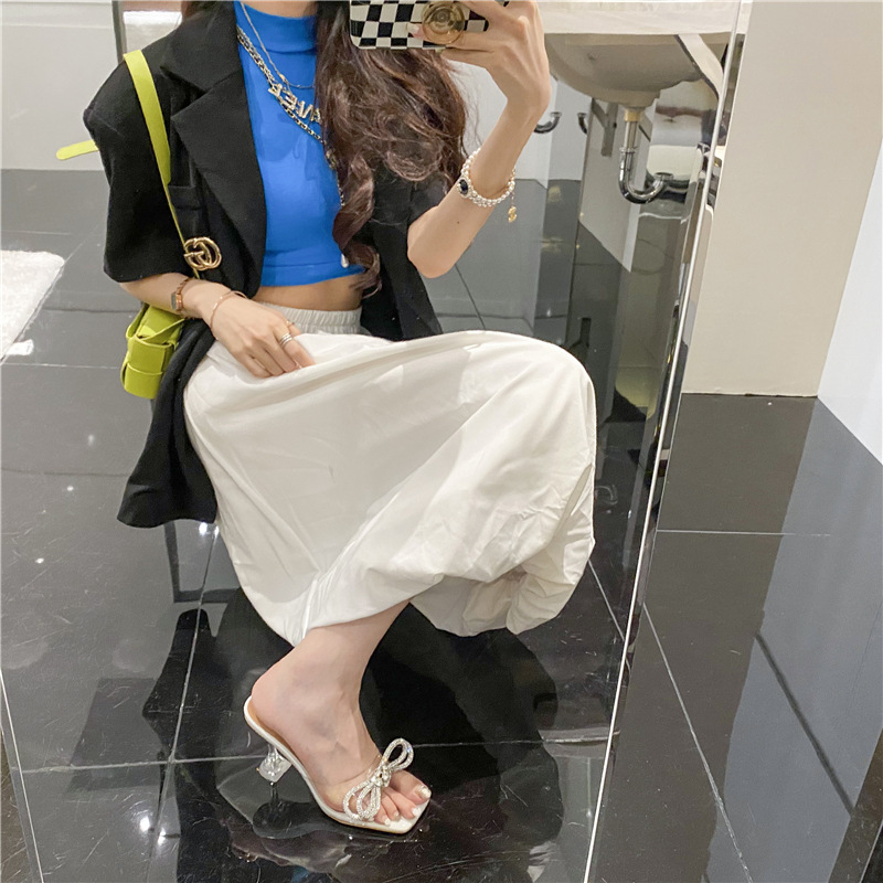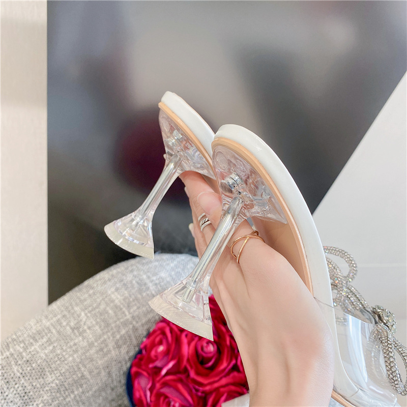 2025 여름 요정 스타일 리본 장식 크리스탈 투명 힐 하이힐 샌들 여성용 외출용