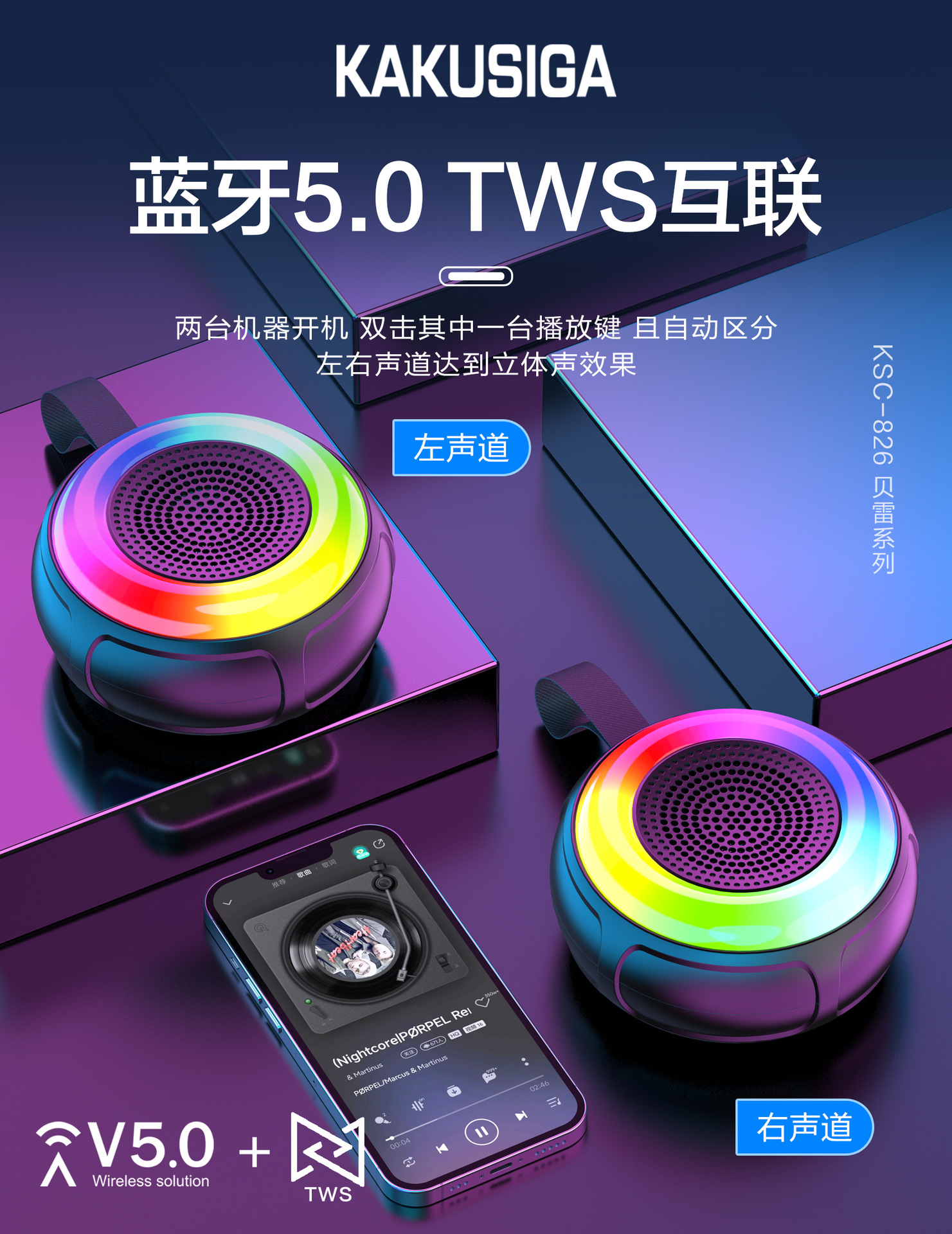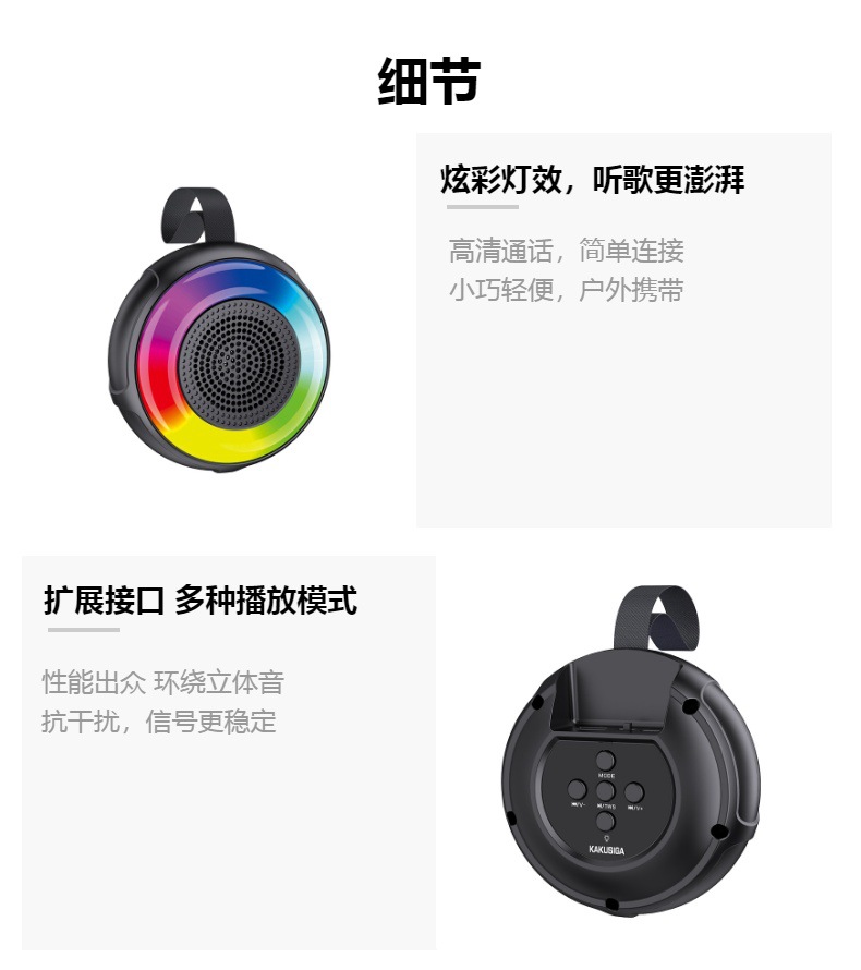 KAKUSIGA 새로운 휴대용 미니베이스 야외 휴대용 다채로운 가벼운 자동차 카드 선물 블루투스 스피커스토어 가기