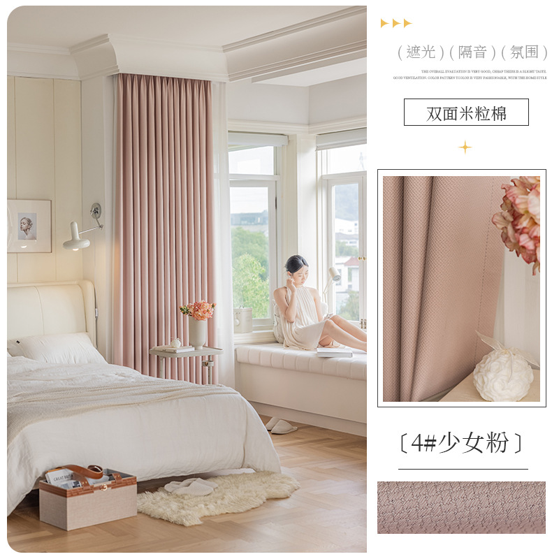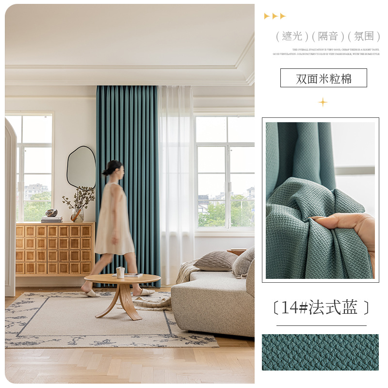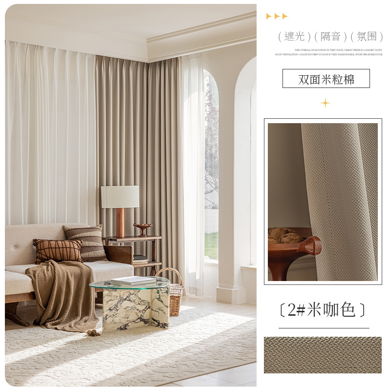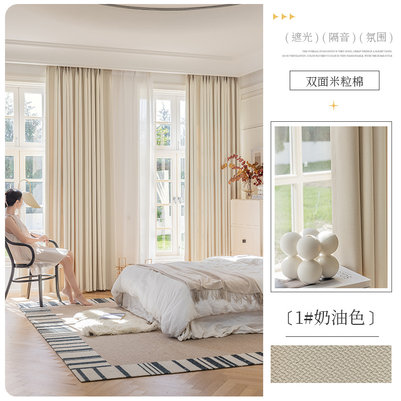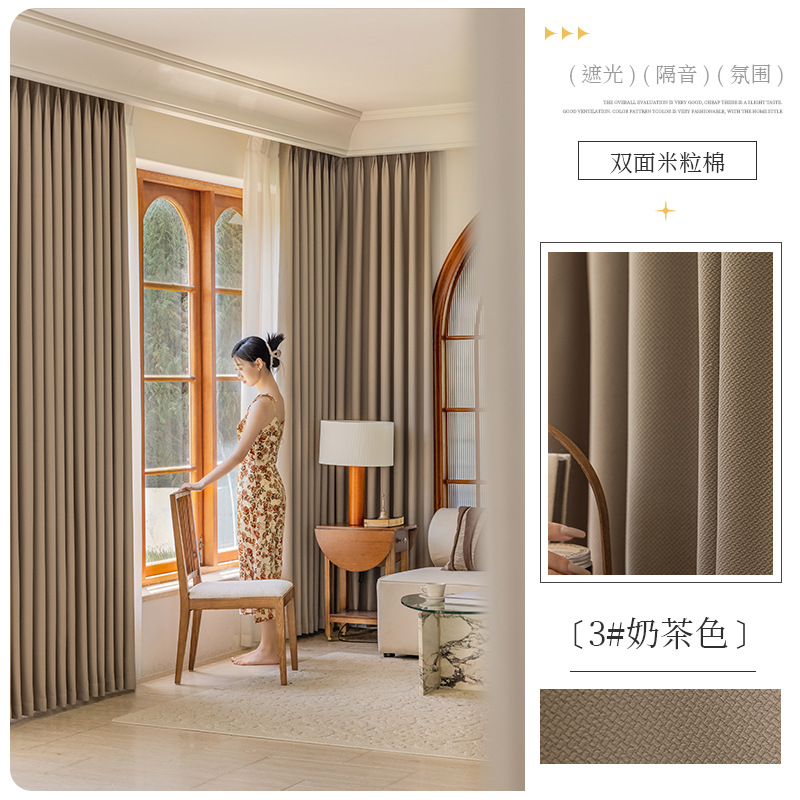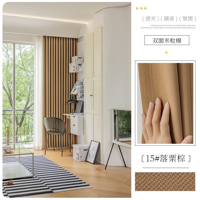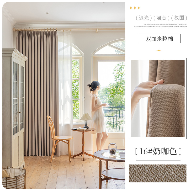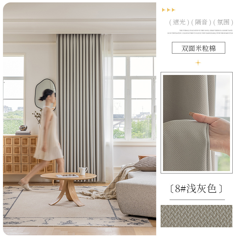 Shaoxing 특별 가격 빛 차단 커튼 양면 쌀 코튼 라이트 럭셔리 간단한 거실 침실 엔지니어링 호텔 도매 및 소매스토어 가기