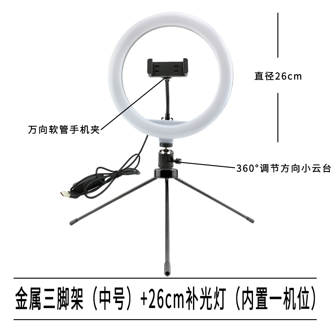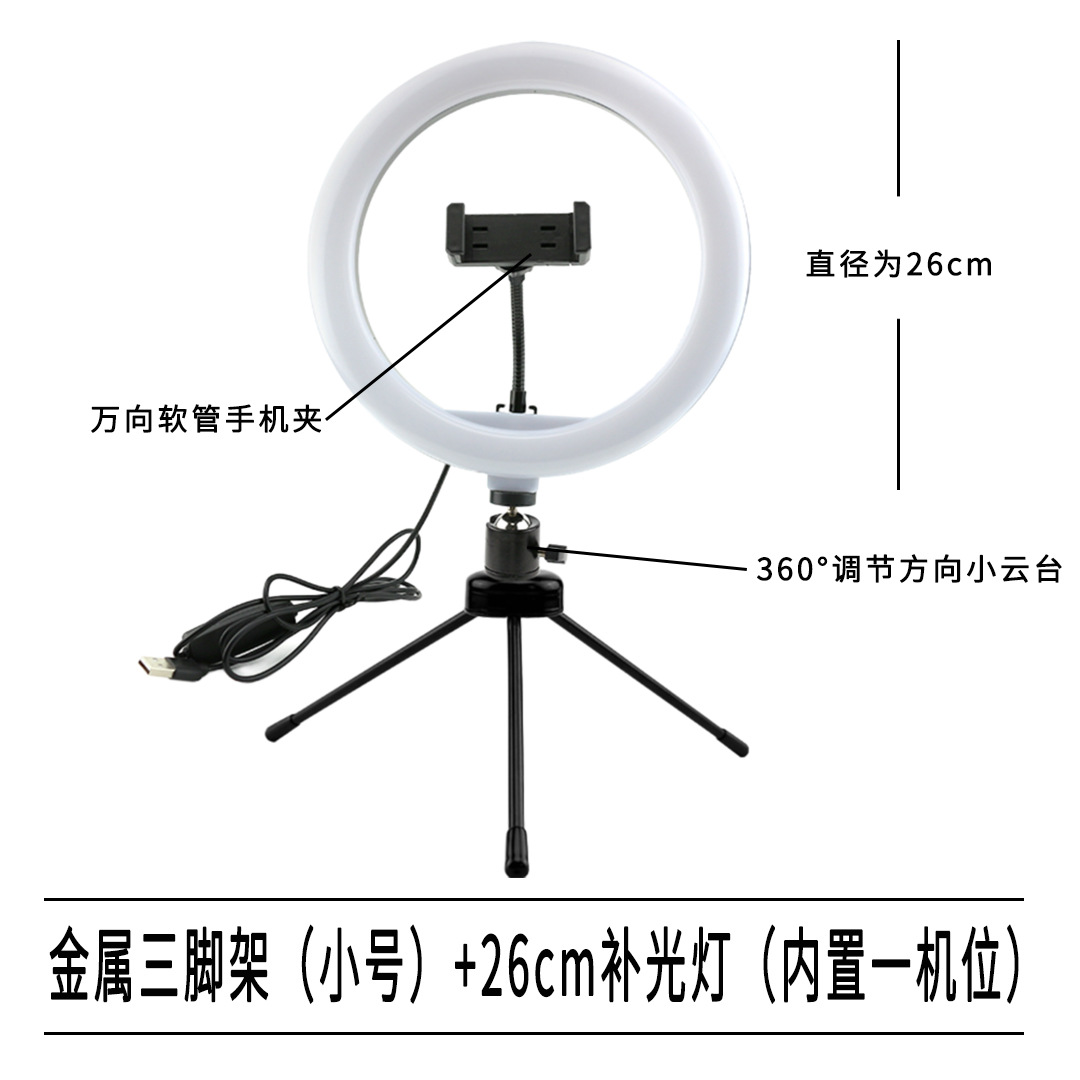 데스크탑 휴대폰 태블릿 마이크 라이브 방송 스탠드 26cm 링 조명 라이브 방송 셀카 촬영 삼각대