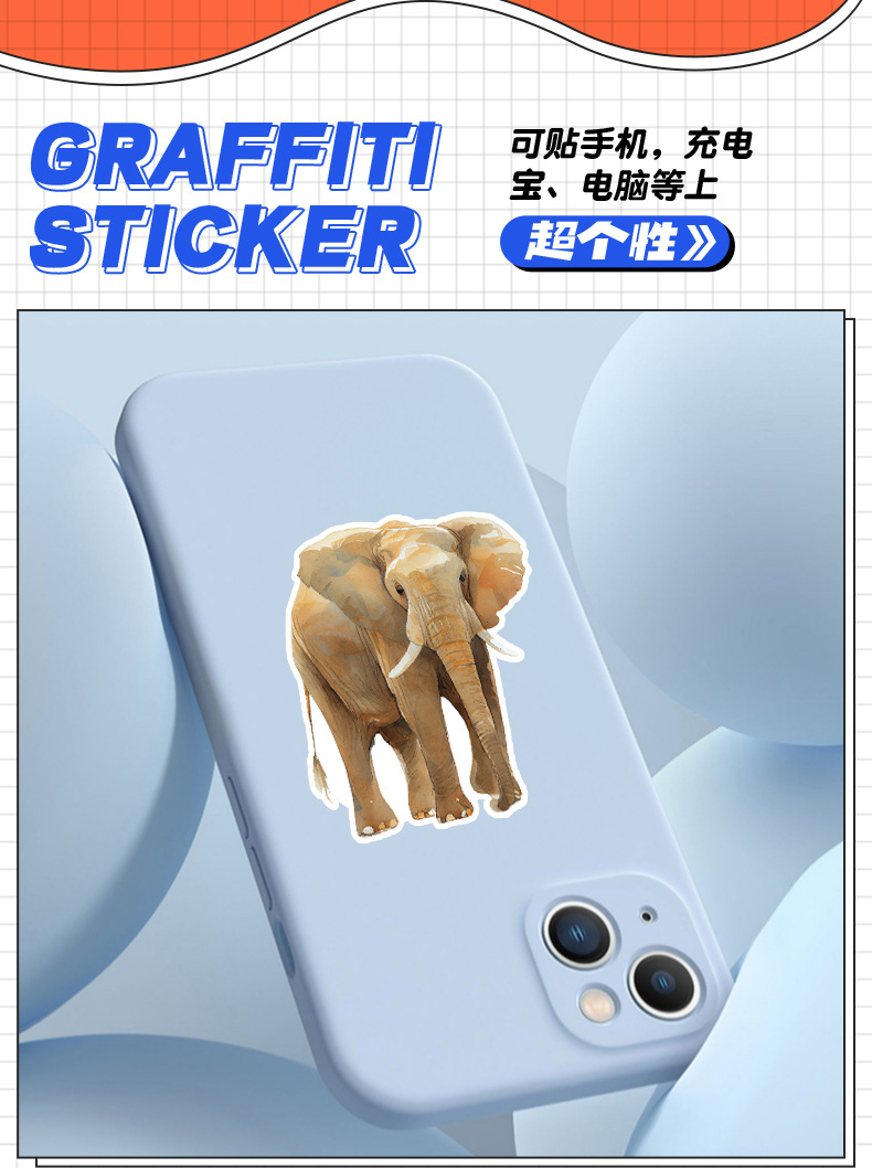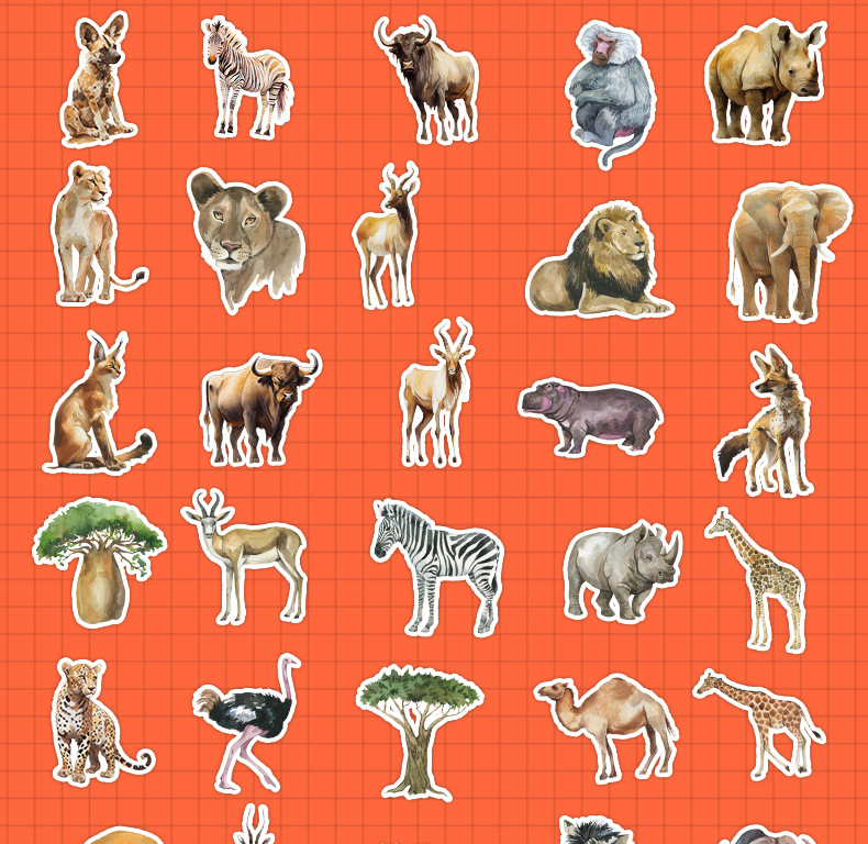 50 수채화 아프리카 동물 낙서 스티커 휴대 전화 컴퓨터 냉장고 장식 스티커 방수 창조적 인 수하물 스티커