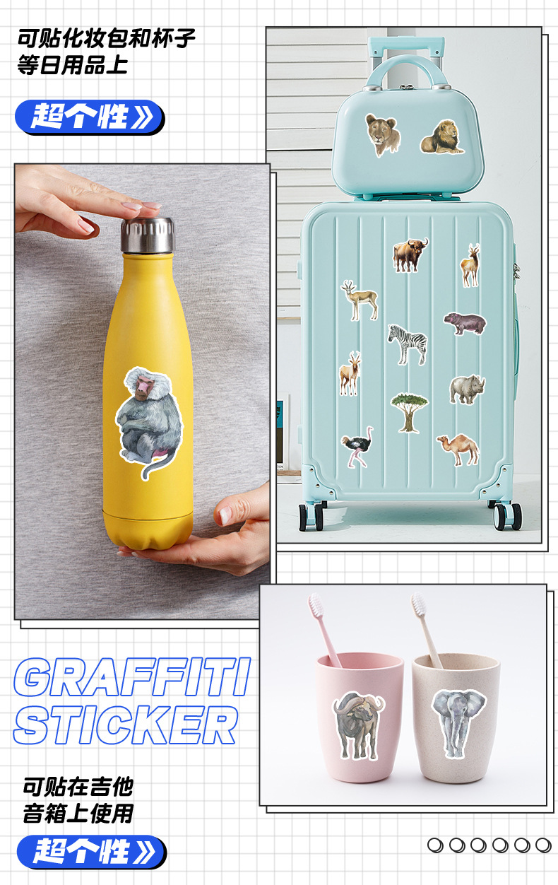50 수채화 아프리카 동물 낙서 스티커 휴대 전화 컴퓨터 냉장고 장식 스티커 방수 창조적 인 수하물 스티커스토어 가기