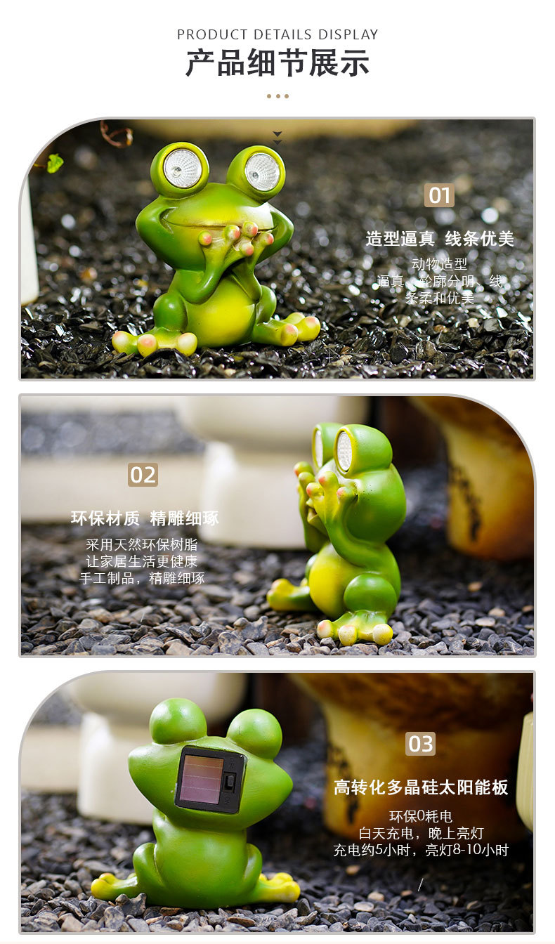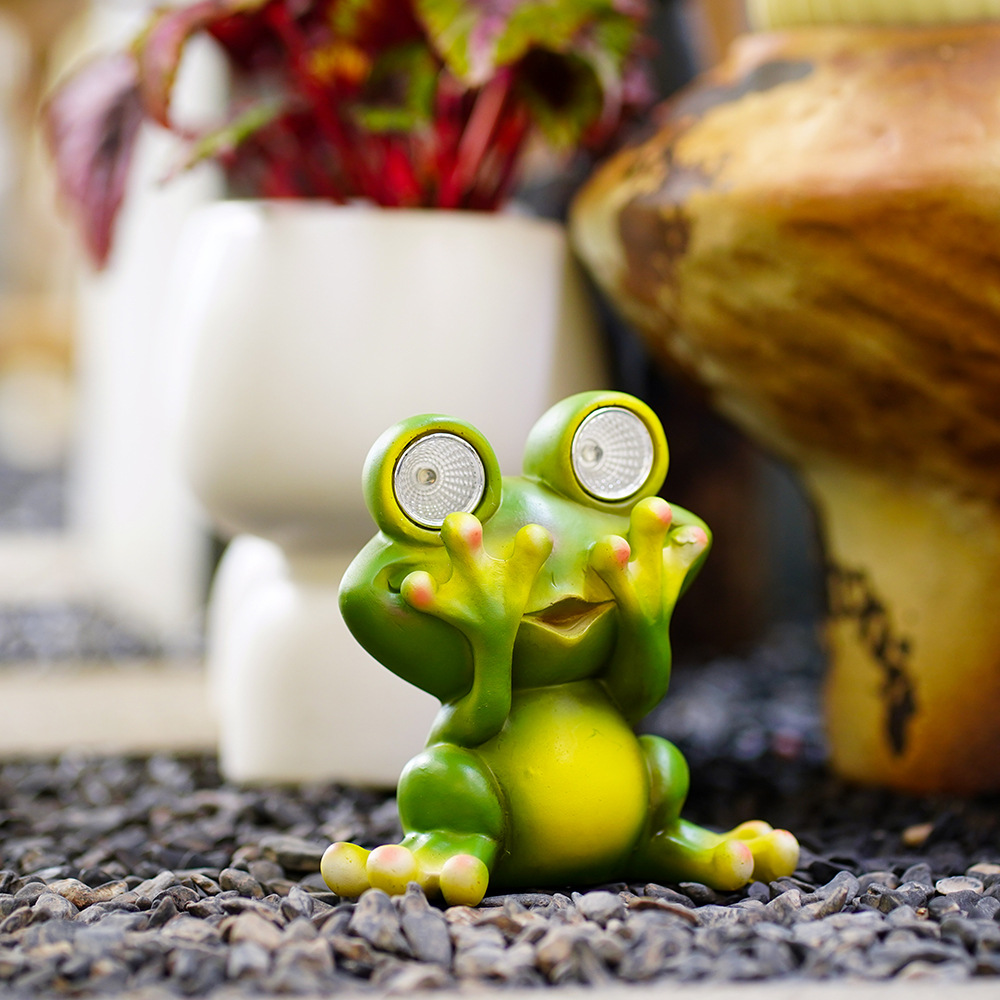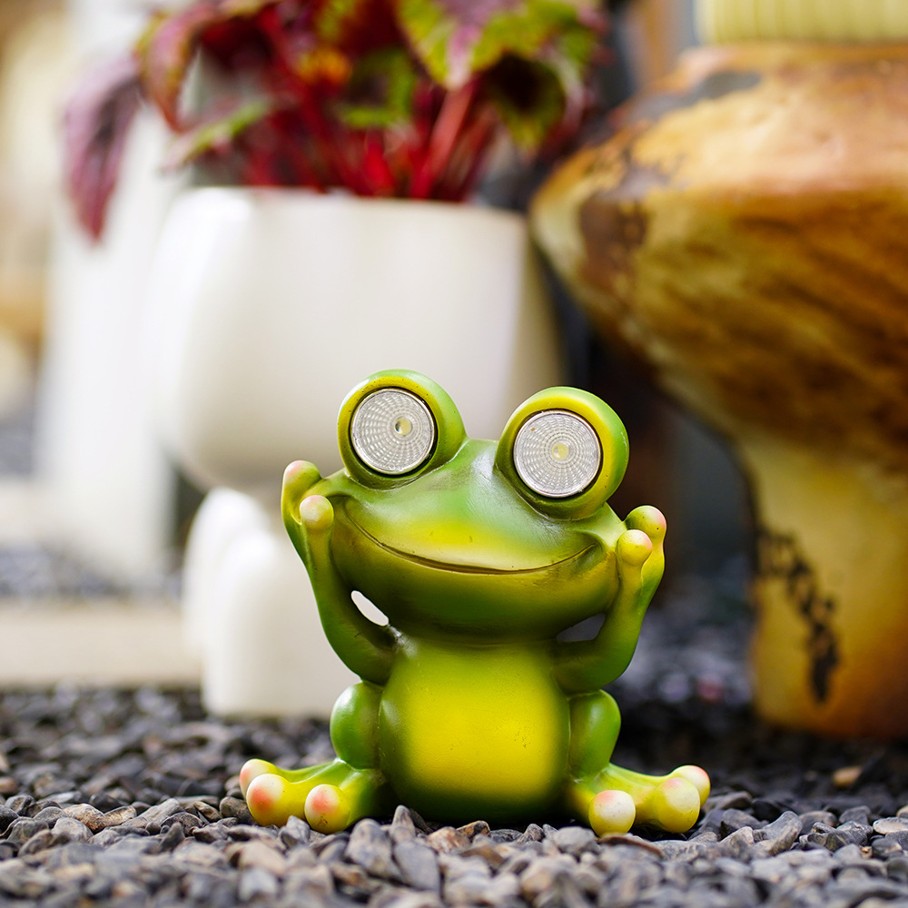 야외 정원 태양 광 개구리 작은 장식품 데스크탑 수지 안뜰 발코니 장식 창조적 인 마이크로 풍경