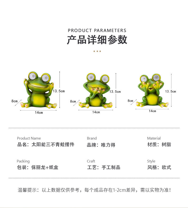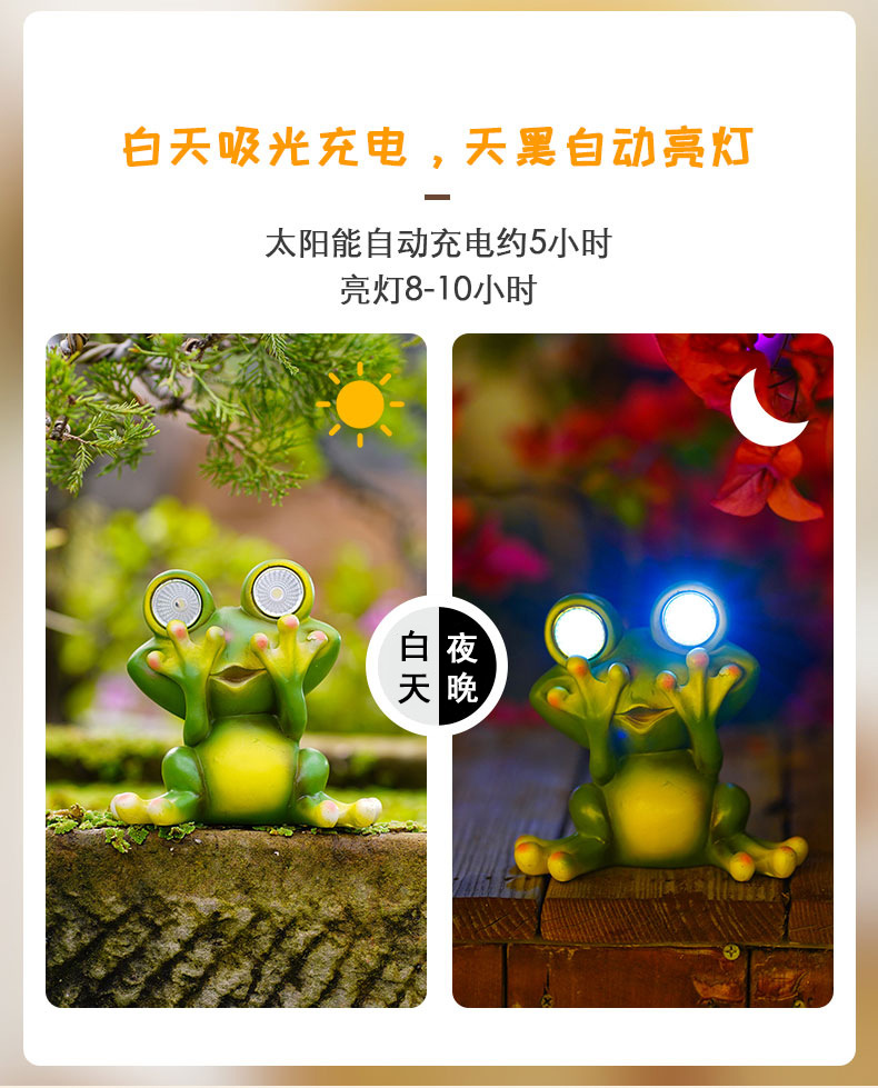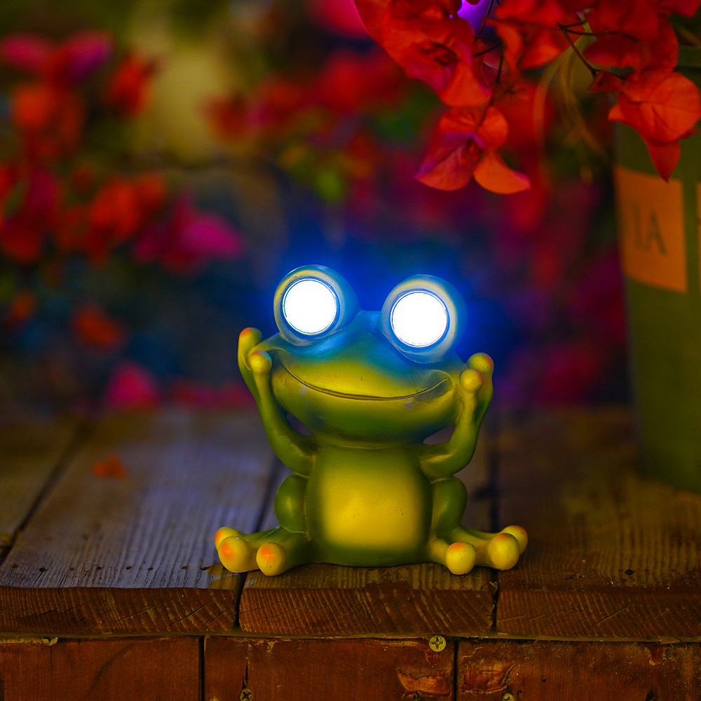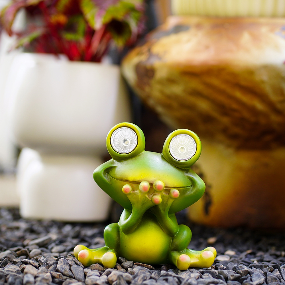 야외 정원 태양 광 개구리 작은 장식품 데스크탑 수지 안뜰 발코니 장식 창조적 인 마이크로 풍경