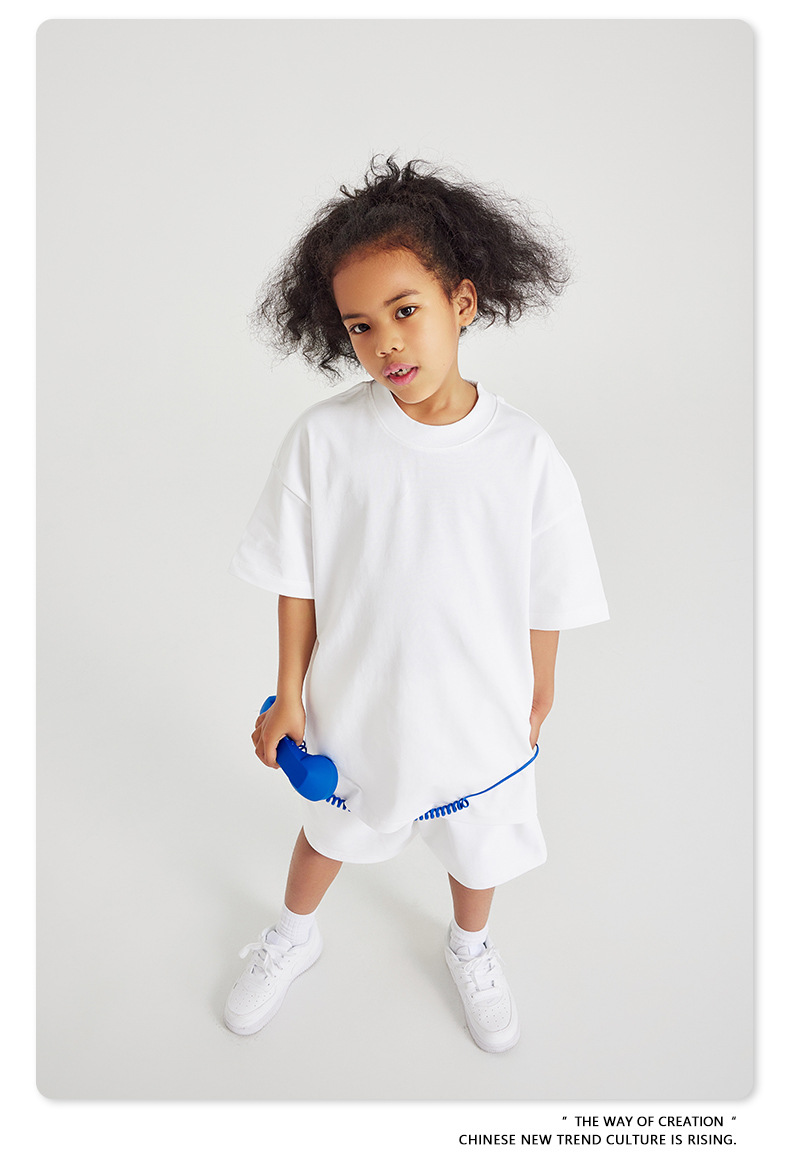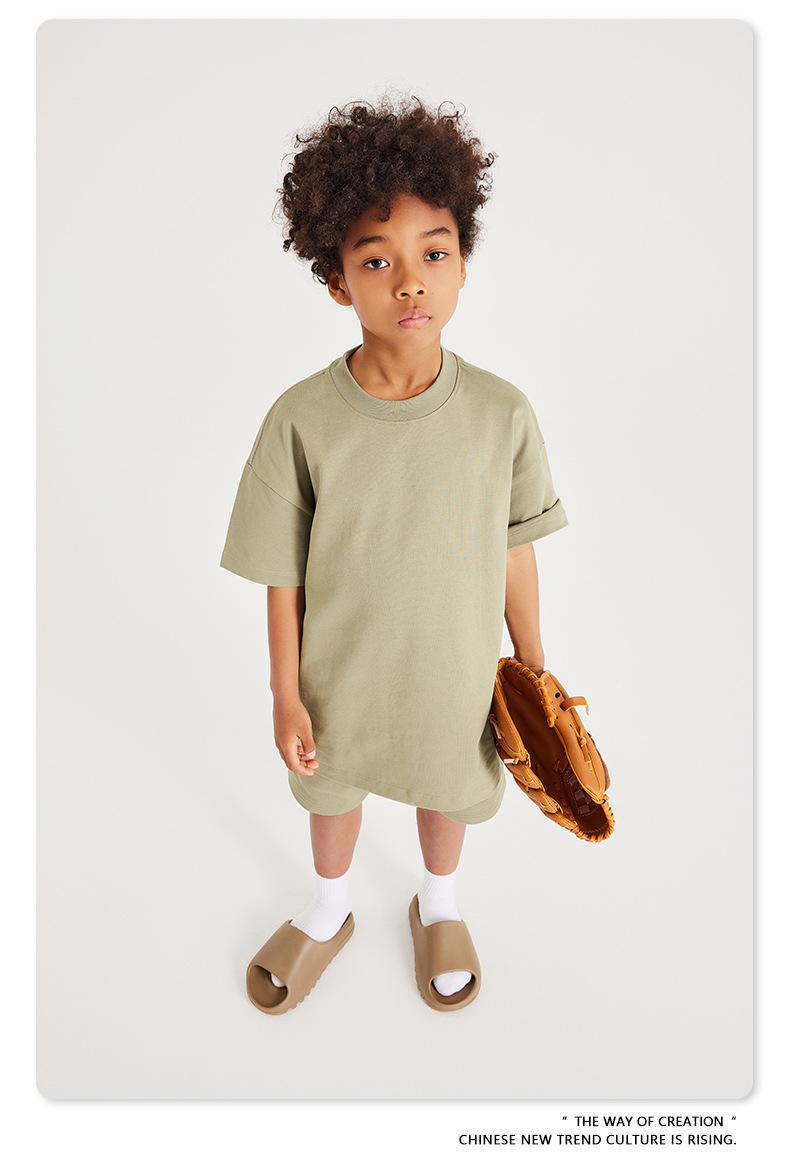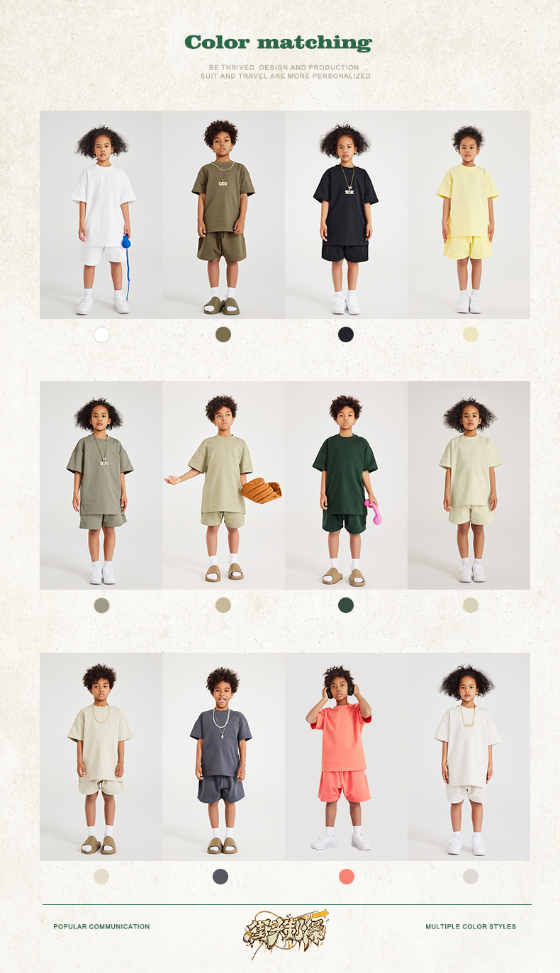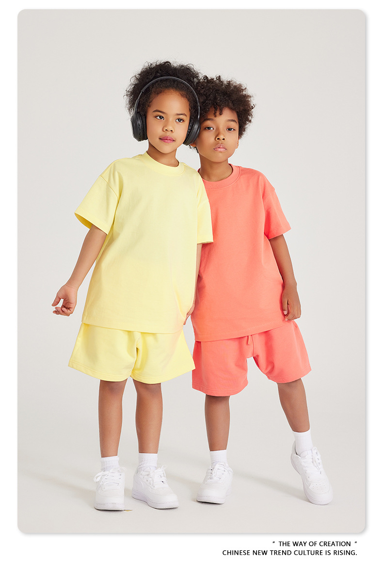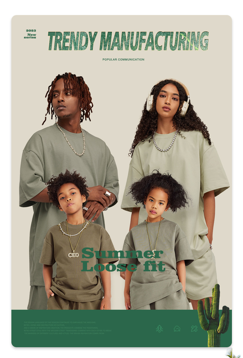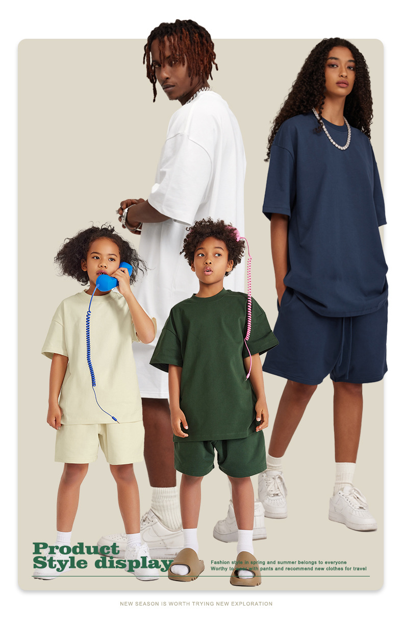 WD 트렌디 브랜드 아동복 | 2025 봄 여름 아메리칸 헤비 어스 컬러 베이직 친자복 순면 티셔츠 세트
