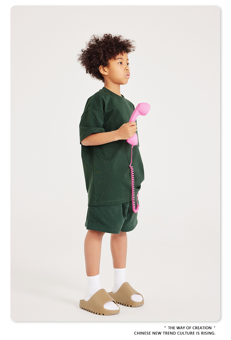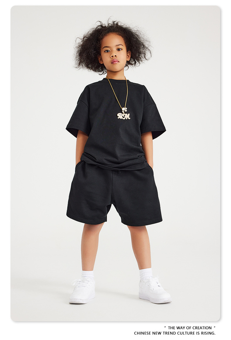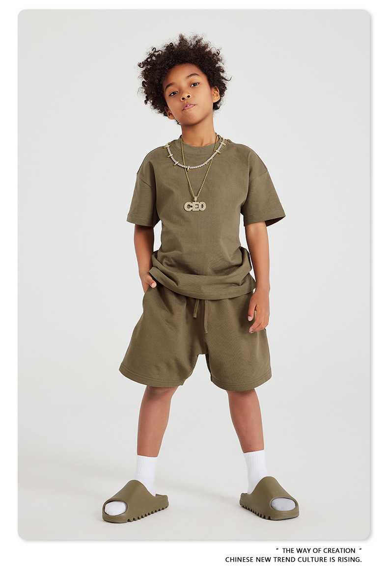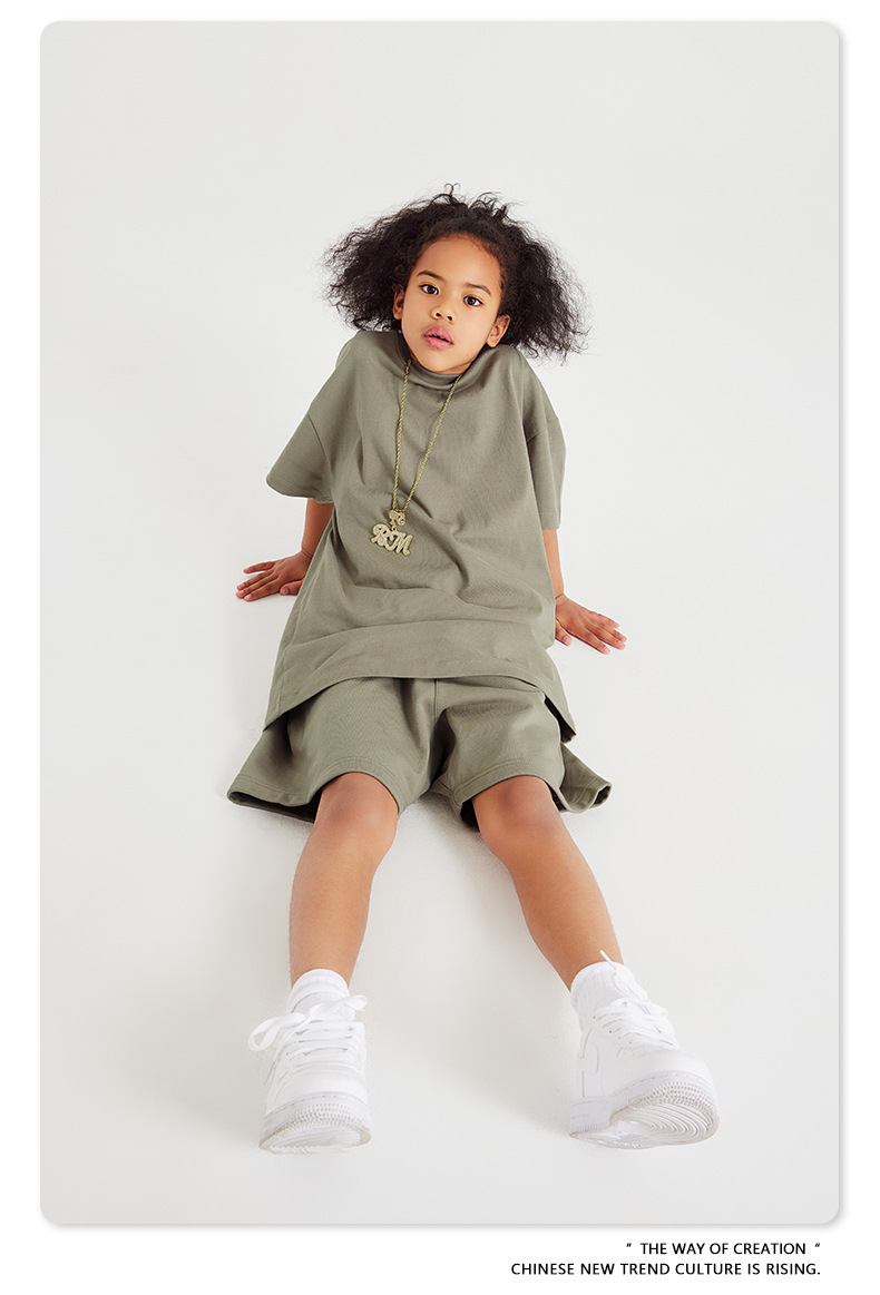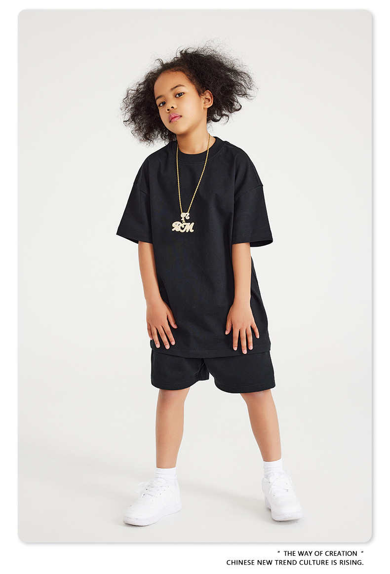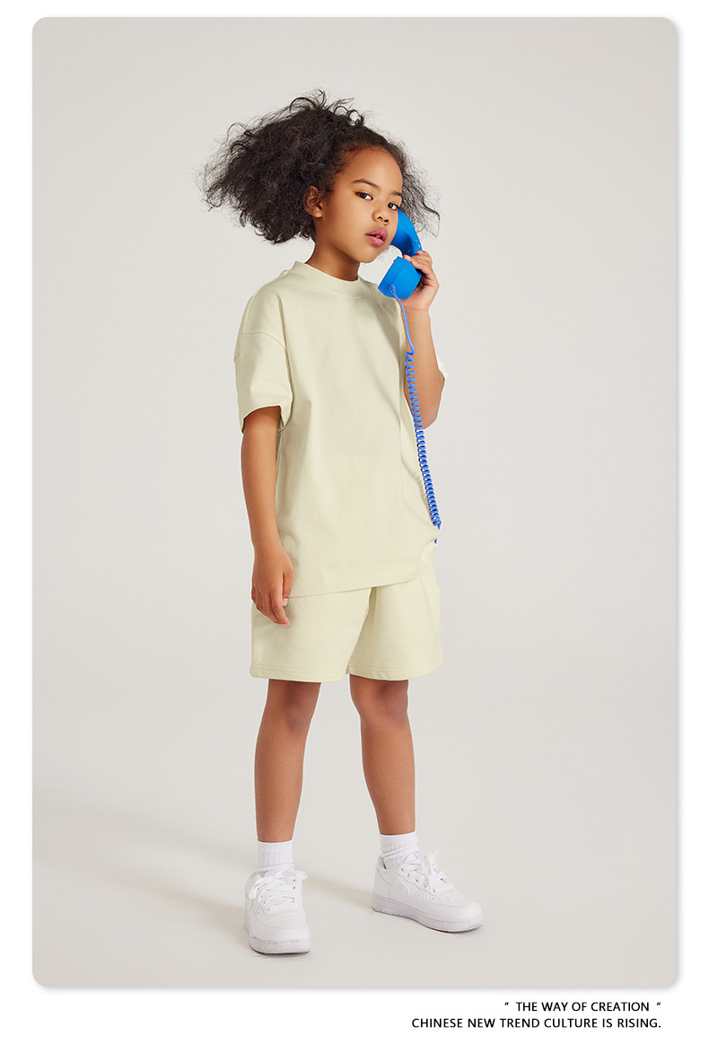 WD 트렌디 브랜드 아동복 | 2025 봄 여름 아메리칸 헤비 어스 컬러 베이직 친자복 순면 티셔츠 세트
