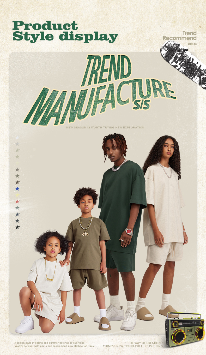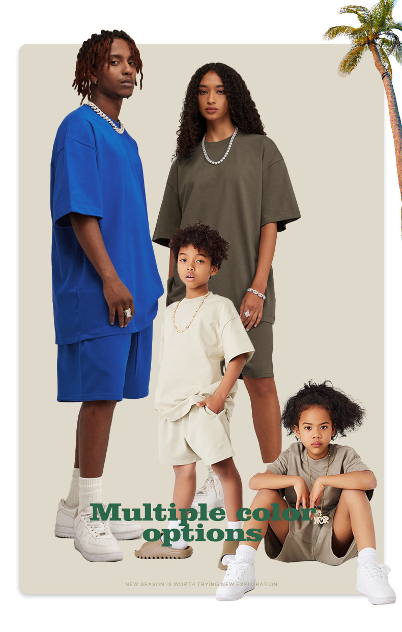 WD 트렌디 브랜드 아동복 | 2025 봄 여름 아메리칸 헤비 어스 컬러 베이직 친자복 순면 티셔츠 세트스토어 가기