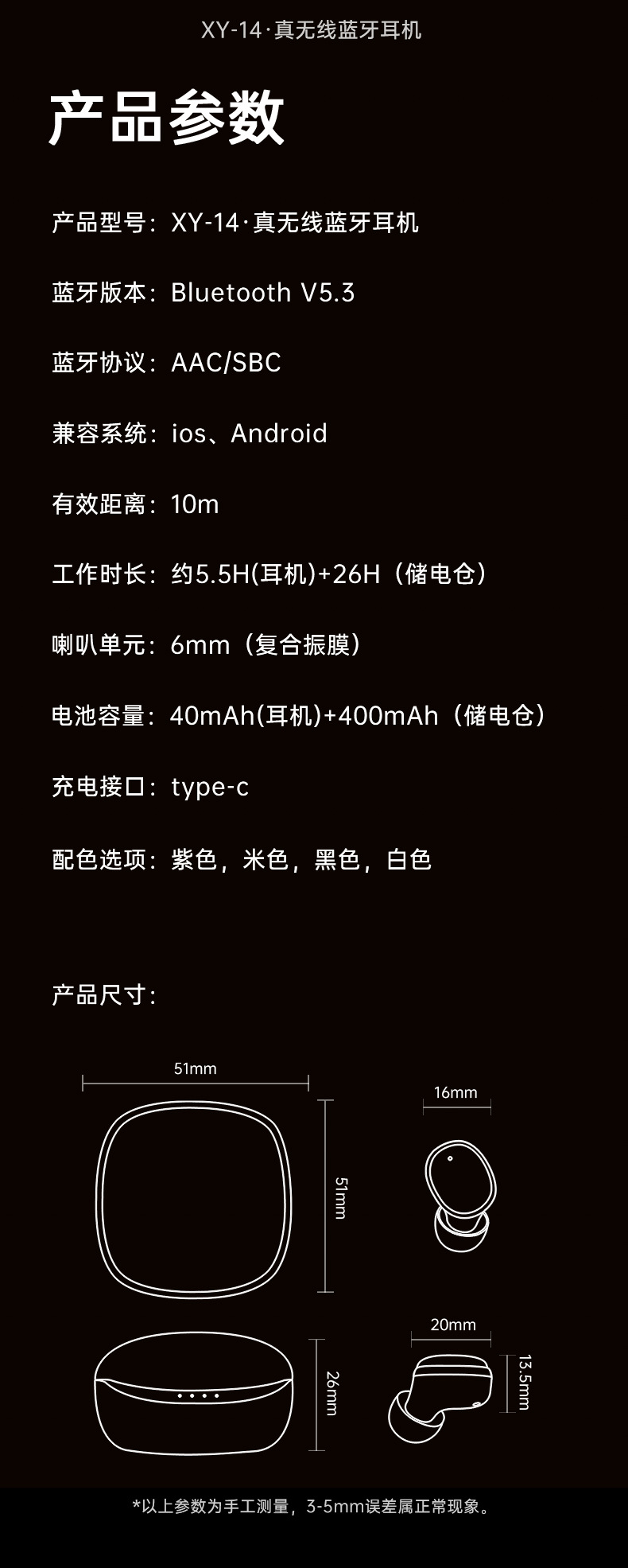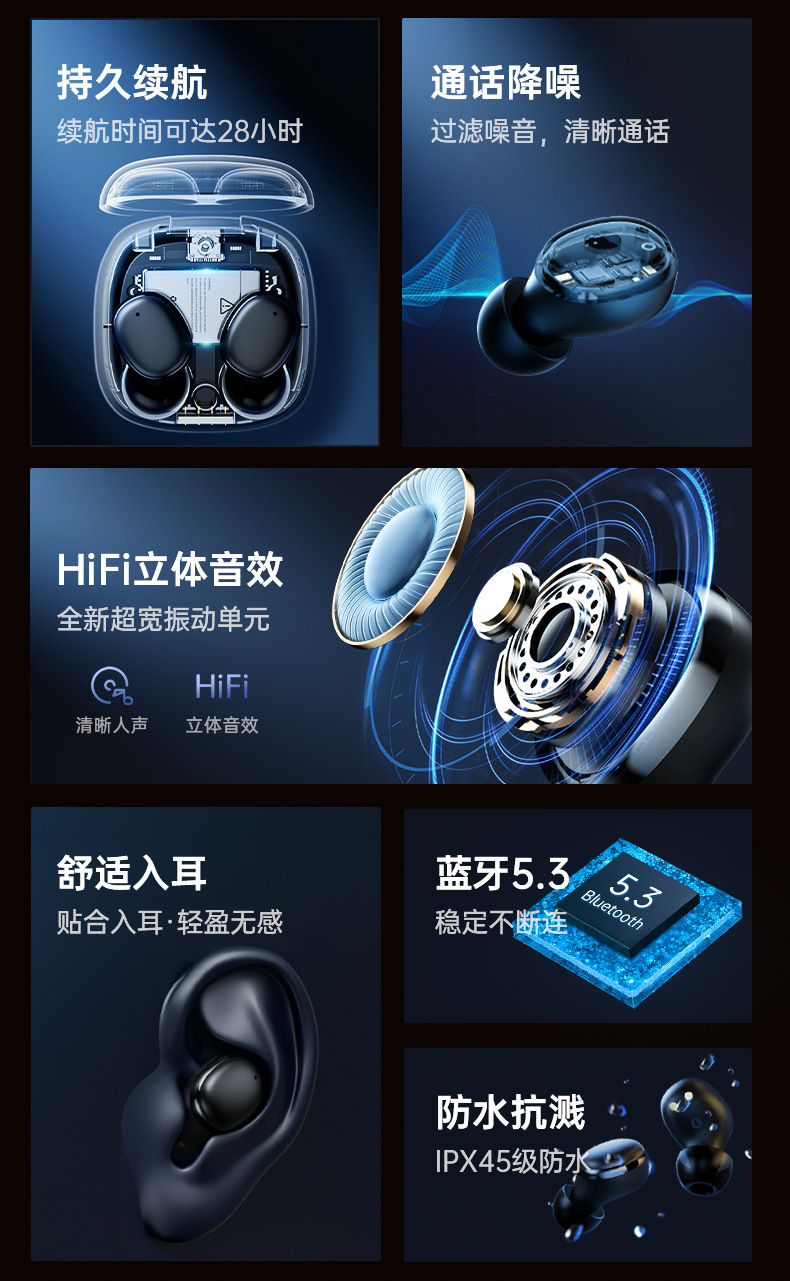 【支持蓝牙协议】支持SBC、AAC、MSBC、HFP、HSP、A2DP、ACRCP