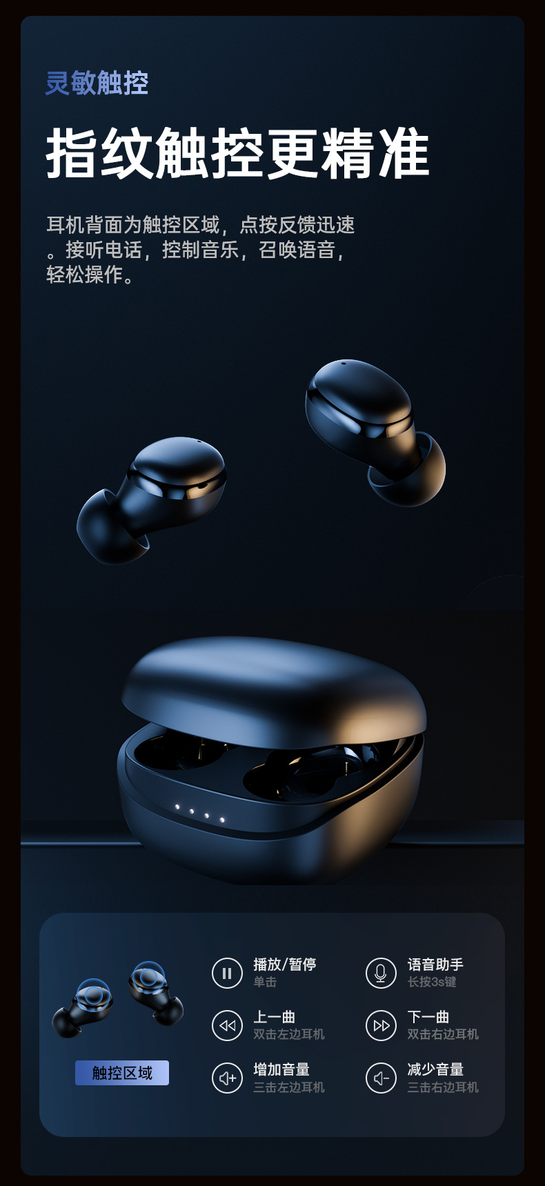 【功能】触控操作/召唤Siri/上下曲/加减音量/播放暂停,拨打/接听拒绝电话