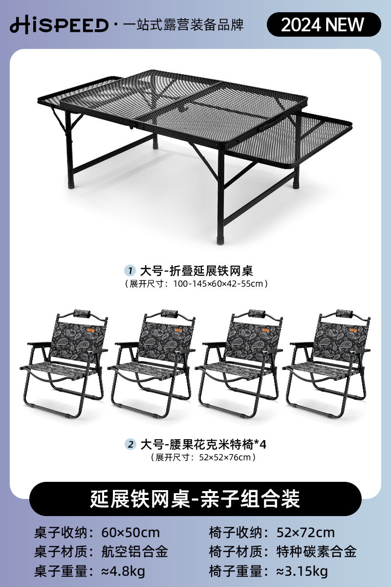 • [가족여행 패키지] 쌍방 확장 그물 테이블 (대형) 레트로 캐슈 꽃-높은 하중-베어링 * 4