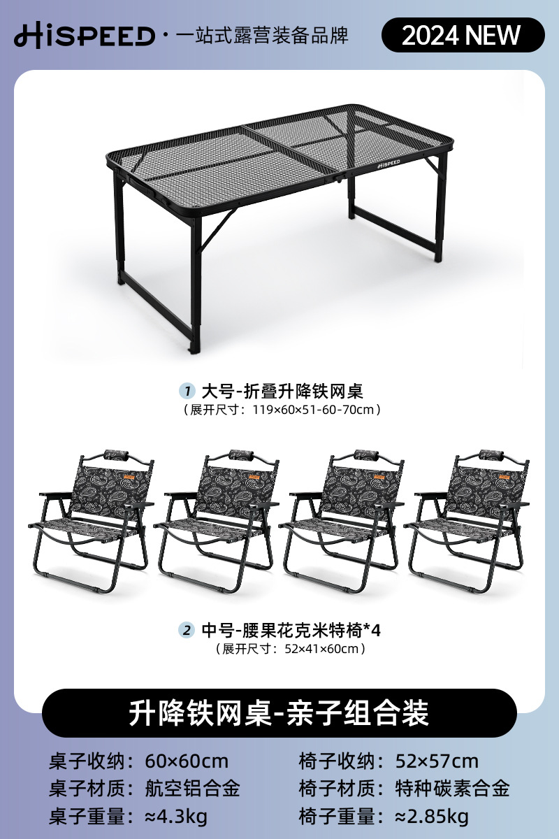 • [가족 나들이 패키지] 그물 테이블 (대형) 복고풍 캐슈 꽃-높은 하중 베어링 * 4