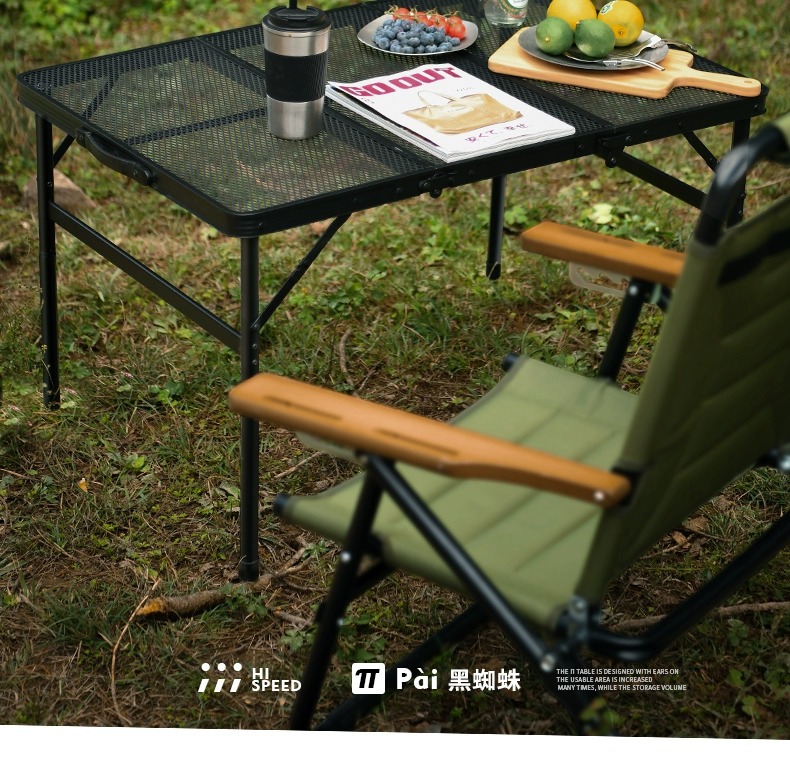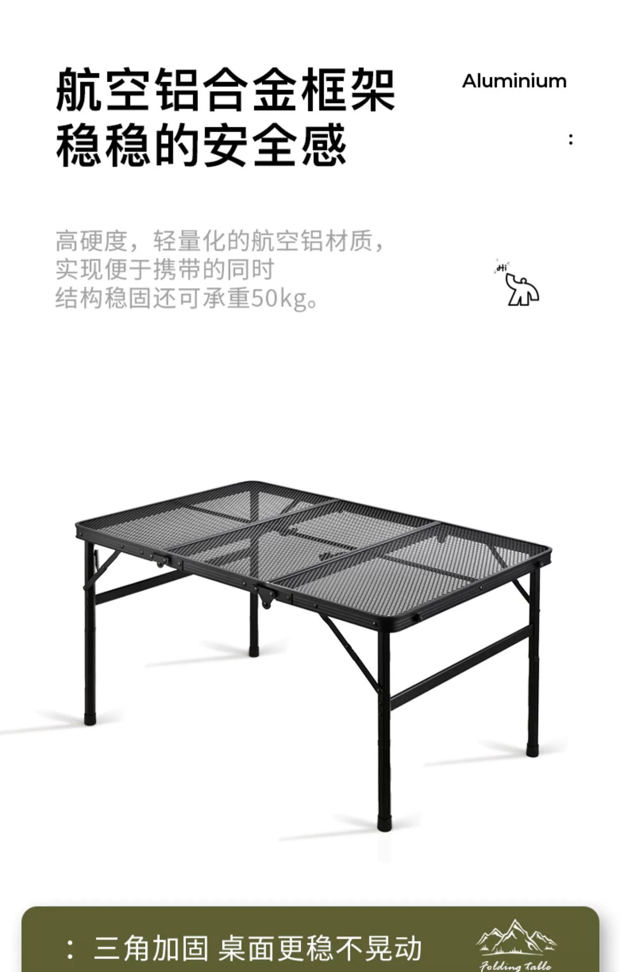 • 대형 업그레이드 접이식 알루미늄 합금 철 메쉬 테이블 [3 기어 조정]]