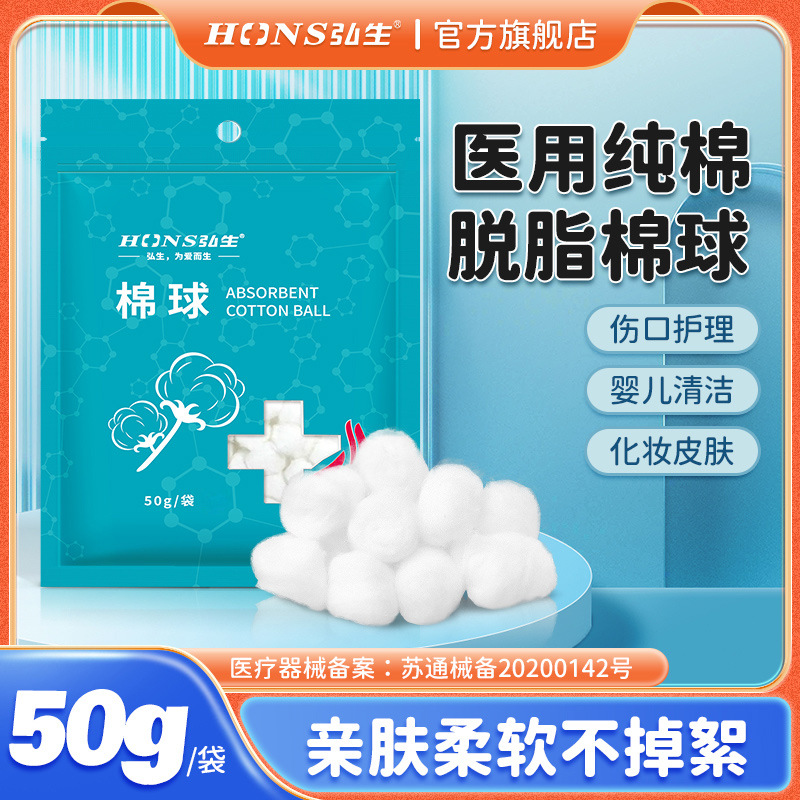 의료용 코튼 볼 탈지 코튼 플라워 볼 위생 청소 가정용 소독 비상 보호 대형 과립 50g 팩스토어 가기