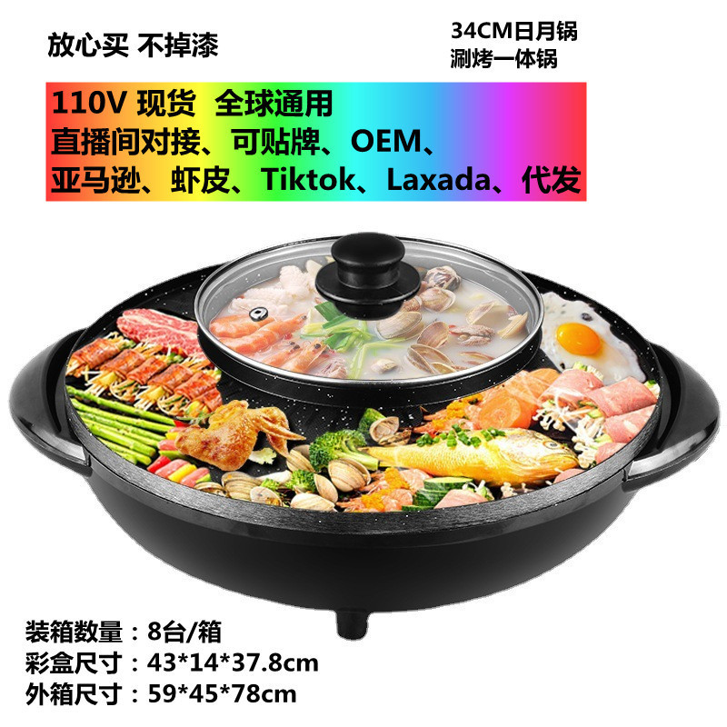 110V 전기 그릴 팬 일체형 팬 다기능 전기 프라이팬 가정용 논스틱 바베큐 팬 소형 기숙사 무연 바베큐 오븐