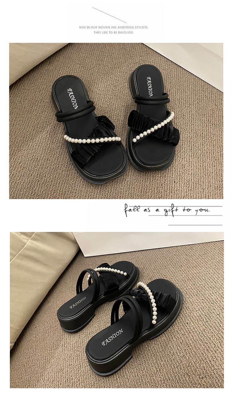 페어리 스타일 진주 샌들과 슬리퍼 여성용 여름 아웃도어 웨어 새로운 두꺼운 밑창 캐주얼 비치 슈즈 1 신발 투웨어 샌들 오픈 토스토어 가기