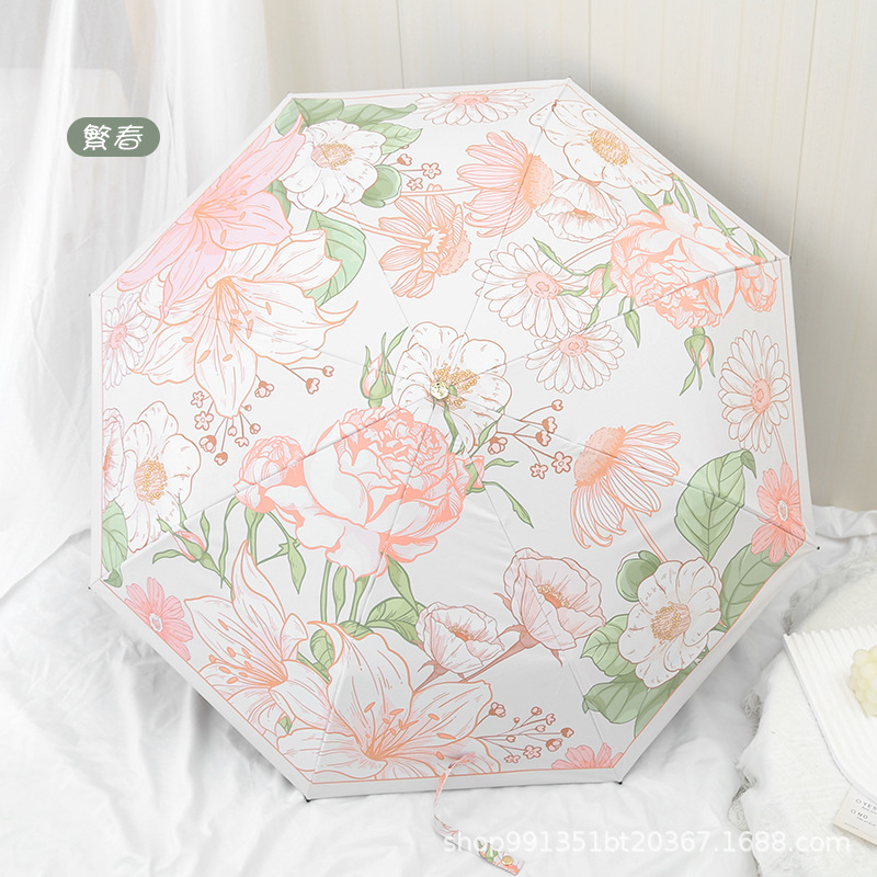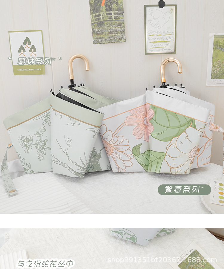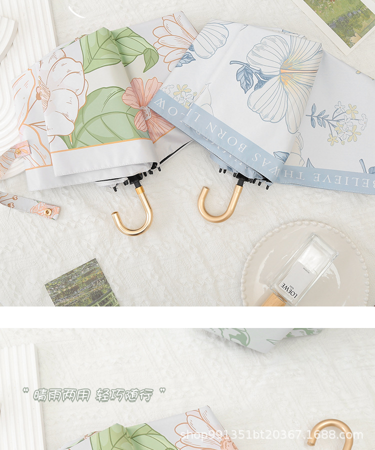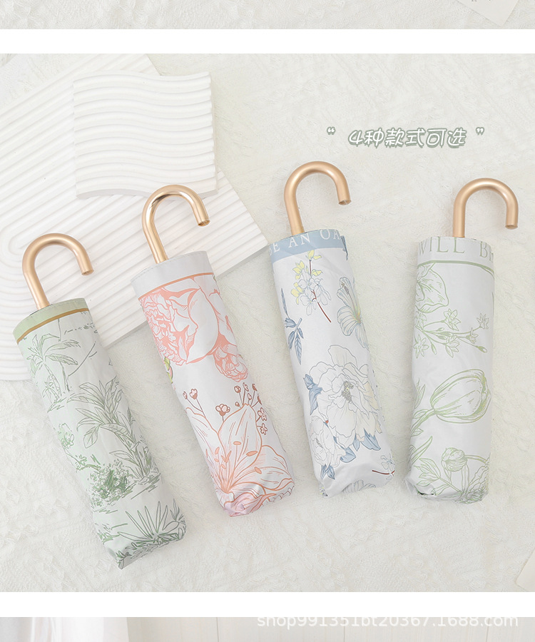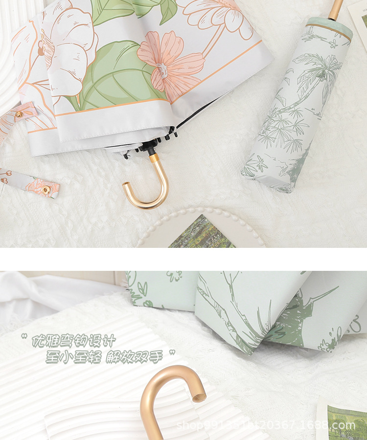 차양 태양 보호 자외선 차단 태양 우산 여자의 이중 사용 맑은 우산 접는 후크 휴대용 복고풍 작은 우산 복고풍