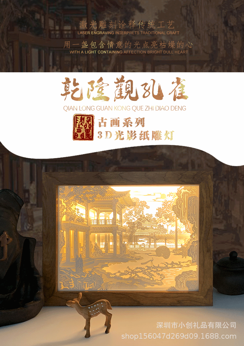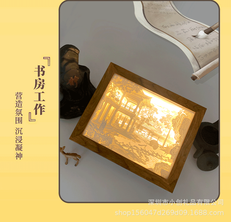 선물의 세대 창조적 인 작은 테이블 램프 야간 램프 고대 바람 공예 3D 입체 빛과 그림자 종이 조각 램프 진자
