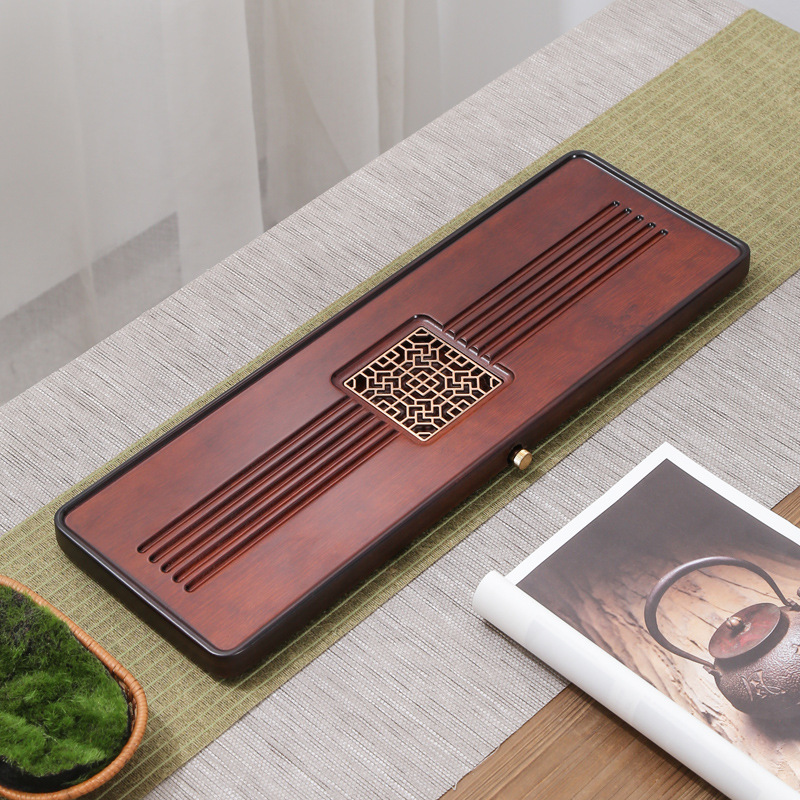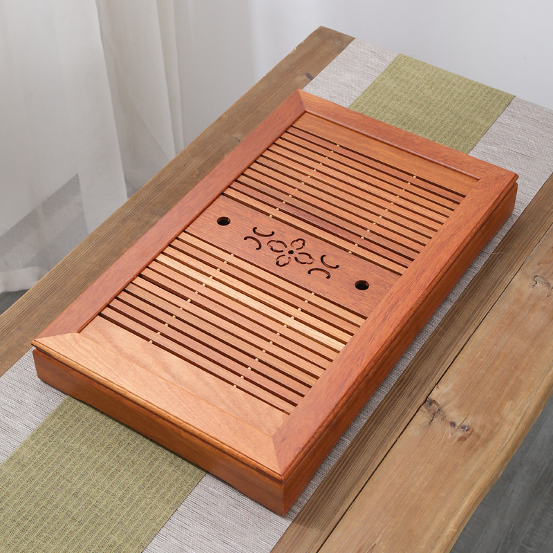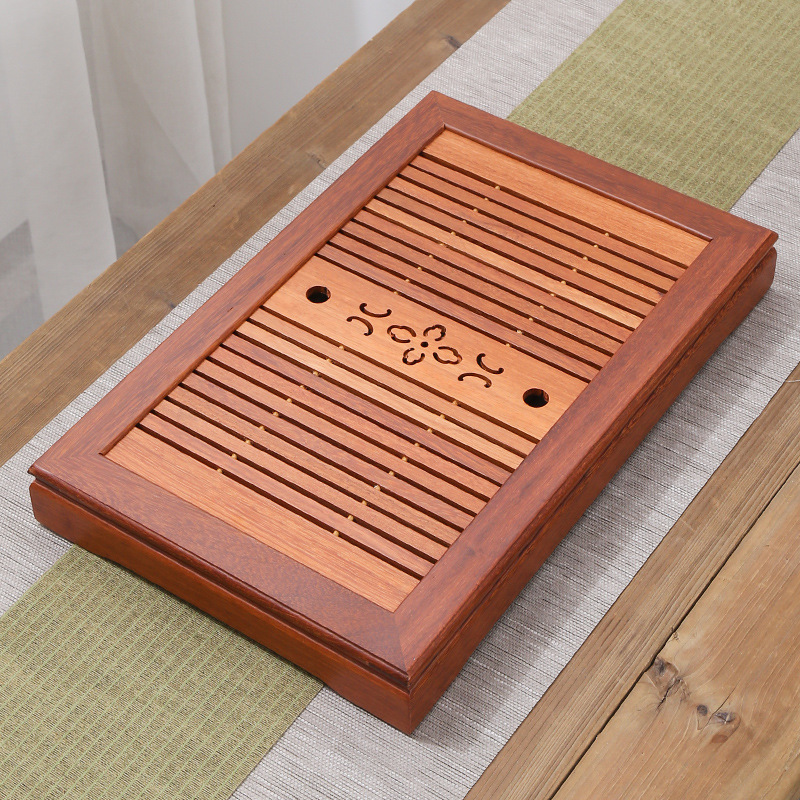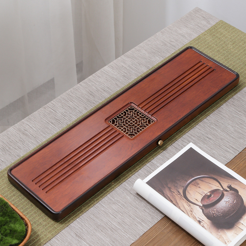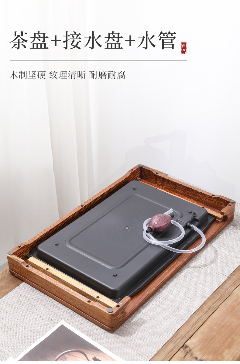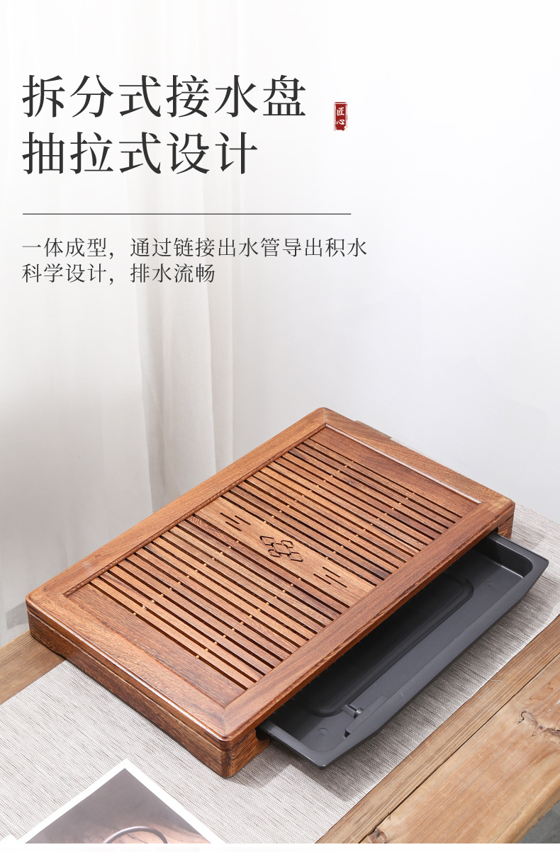 중국 가정용 단단한 나무 티 트레이 작은 서랍형 배수 빈티지 간단한 쿵푸 차 세트 물 저장 티 테이블 티 트레이
