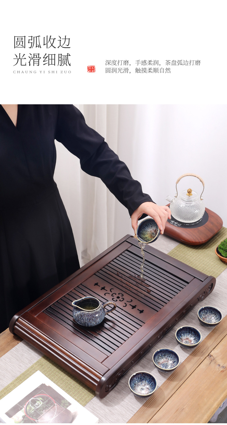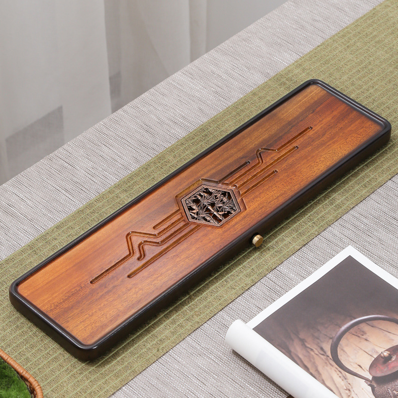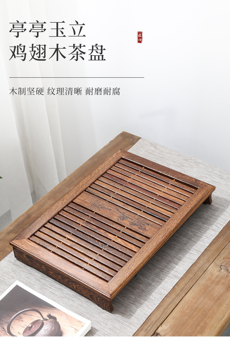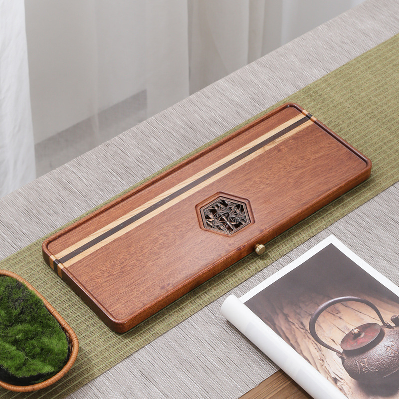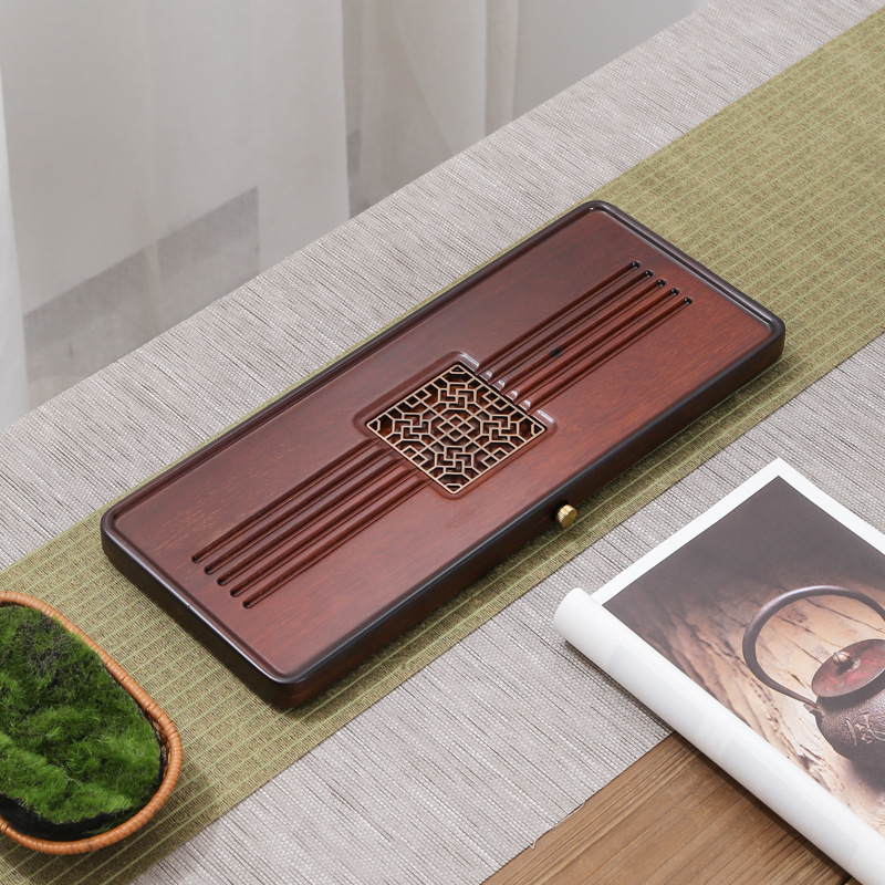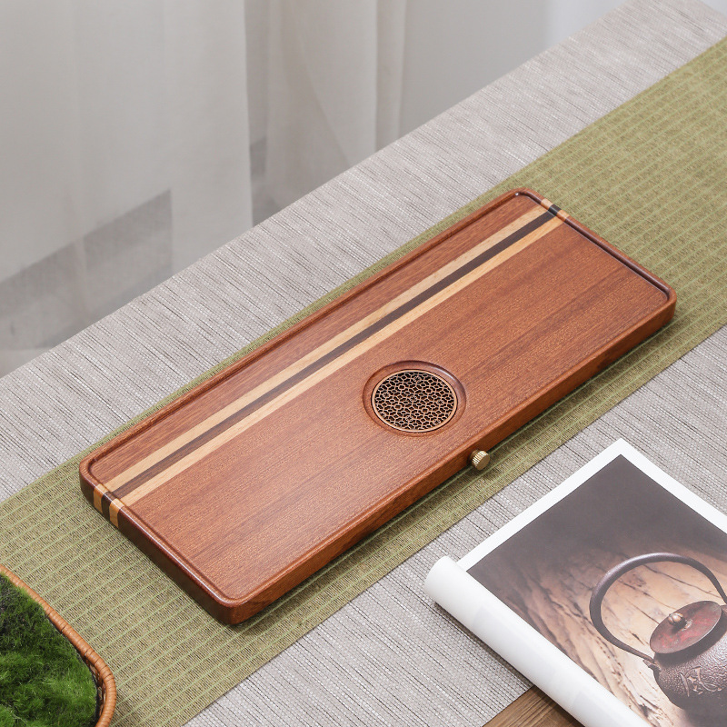 중국 가정용 단단한 나무 티 트레이 작은 서랍형 배수 빈티지 간단한 쿵푸 차 세트 물 저장 티 테이블 티 트레이