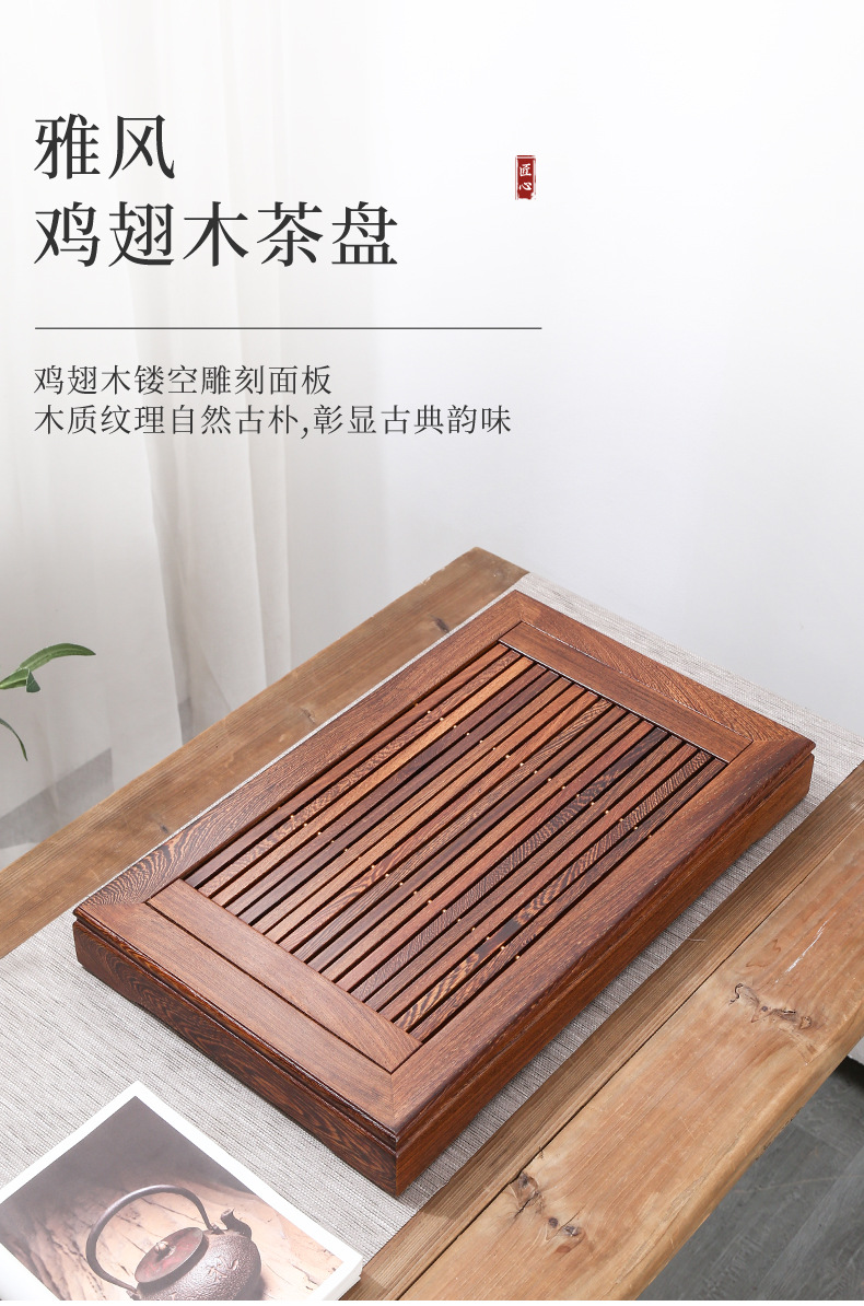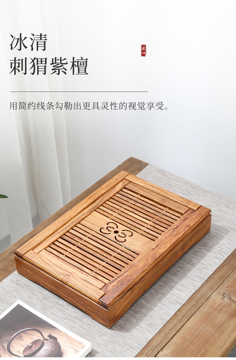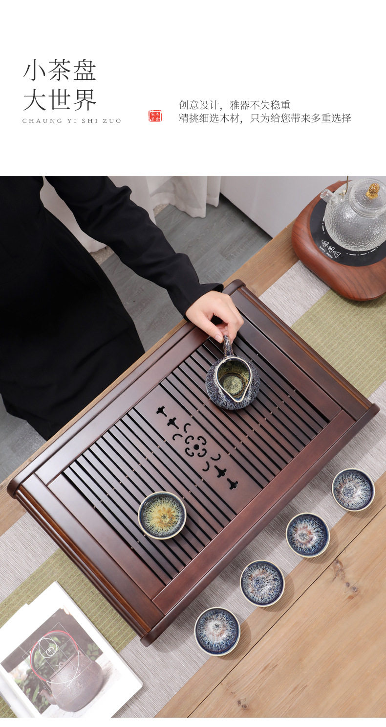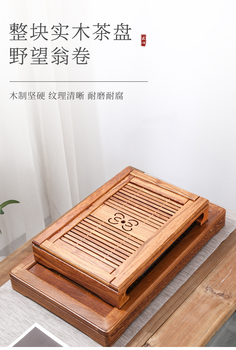 중국 가정용 단단한 나무 티 트레이 작은 서랍형 배수 빈티지 간단한 쿵푸 차 세트 물 저장 티 테이블 티 트레이스토어 가기