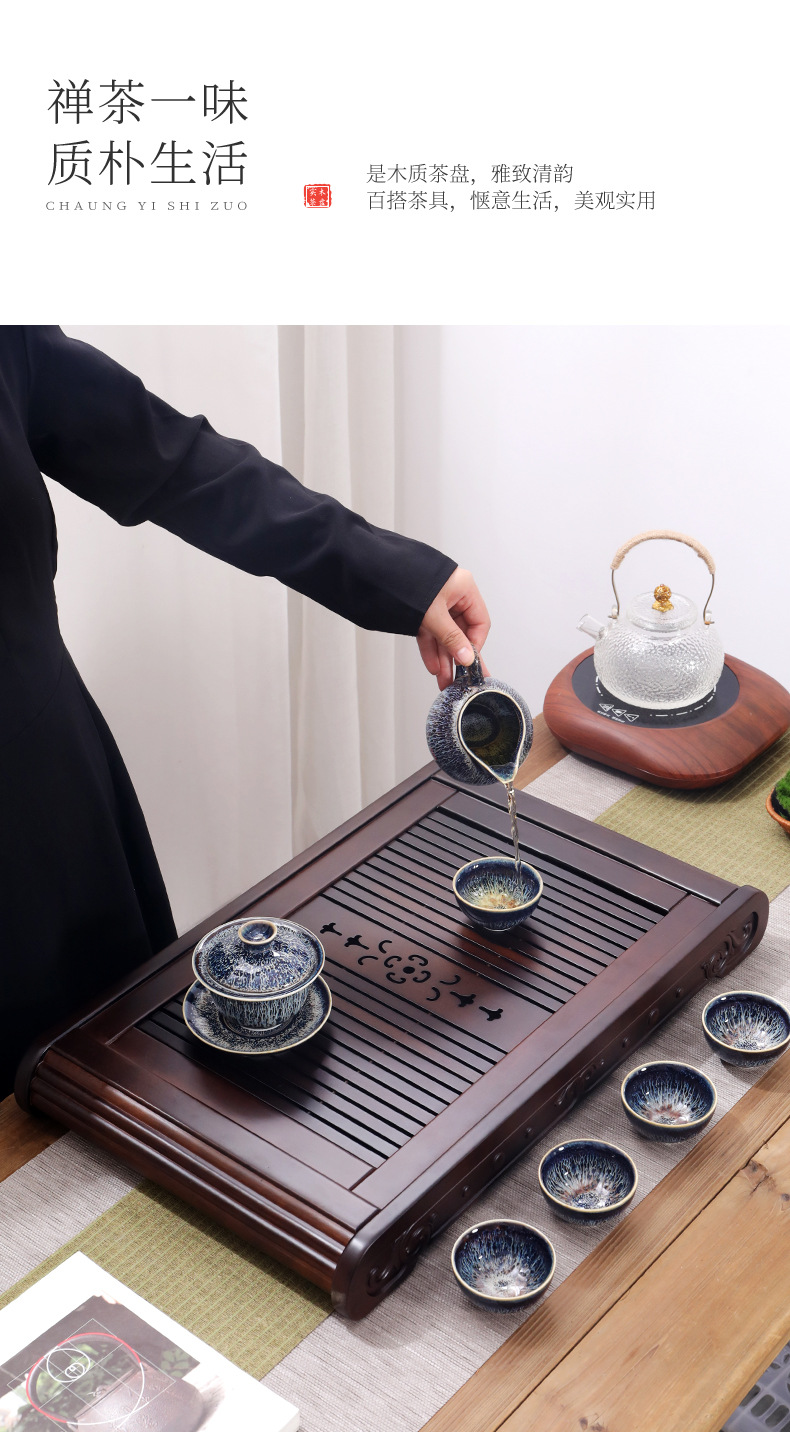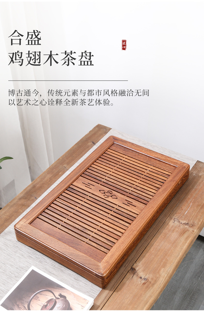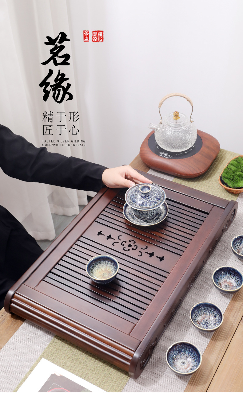중국 가정용 단단한 나무 티 트레이 작은 서랍형 배수 빈티지 간단한 쿵푸 차 세트 물 저장 티 테이블 티 트레이스토어 가기