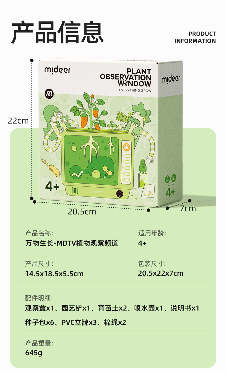 Mider Milu 어린이 심기 관찰 상자 선샤인 룸 자연 과학 교육 관개 수경 TV 관찰 창 완구스토어 가기