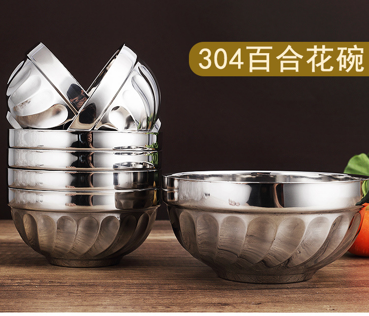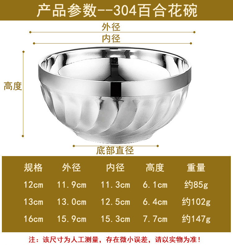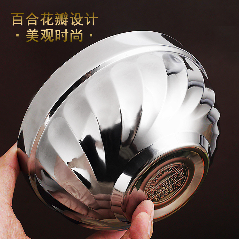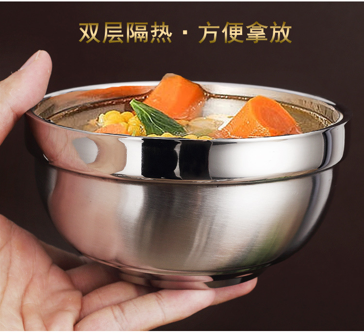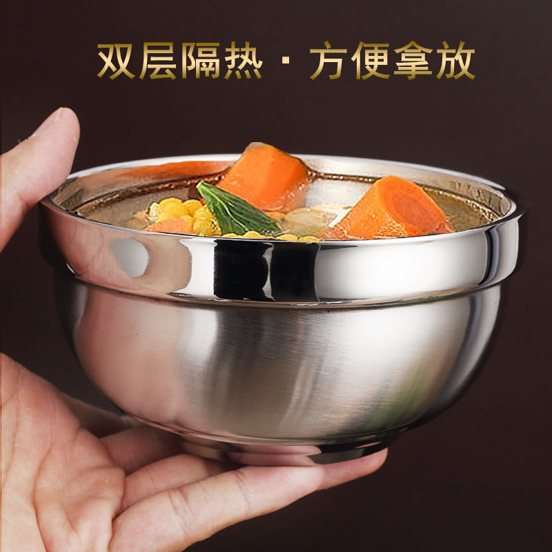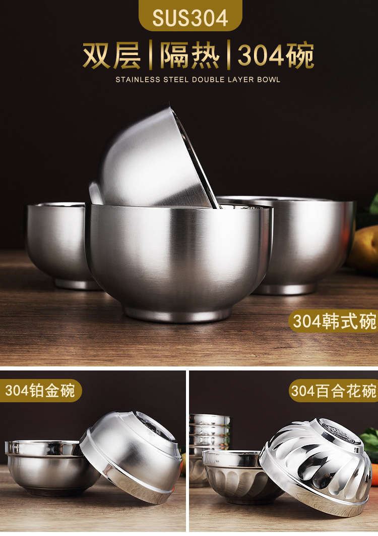 식품 학년 304 스테인레스 스틸 그릇 2 층 그릇 먹는 그릇 두꺼운 가정용 단열 그릇 데우기 방지 한식 그릇 릴리 그릇