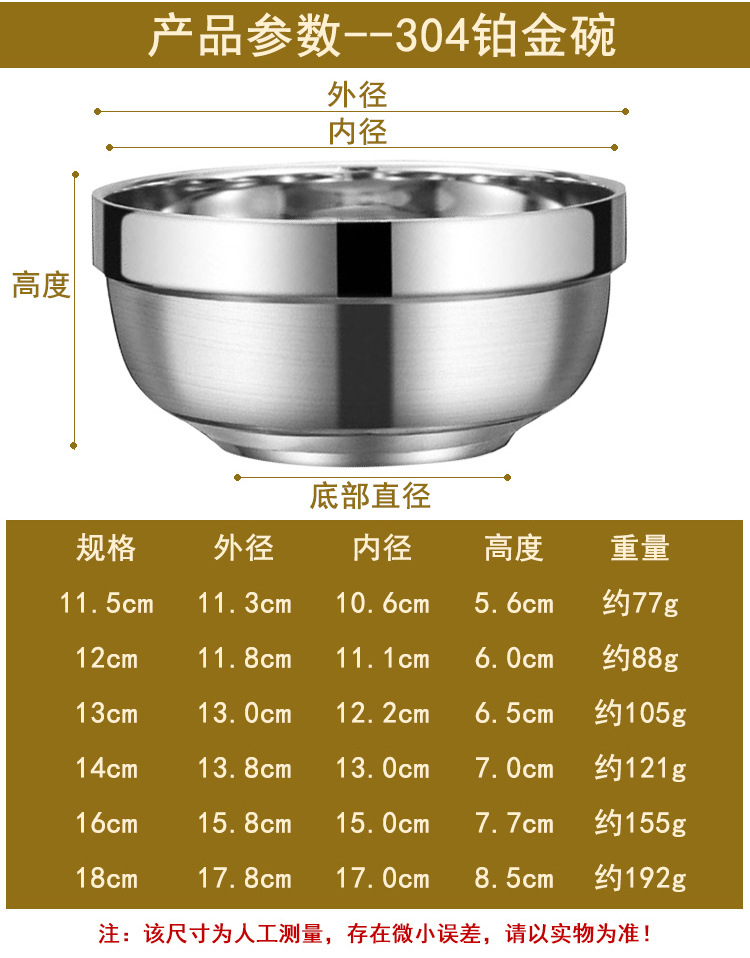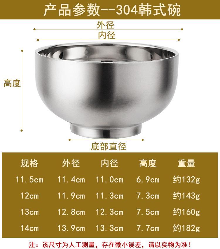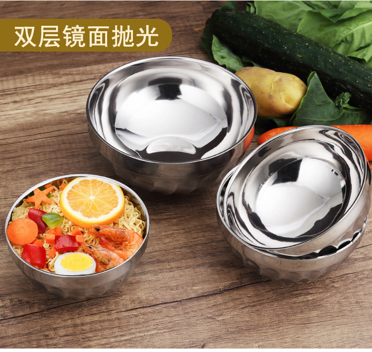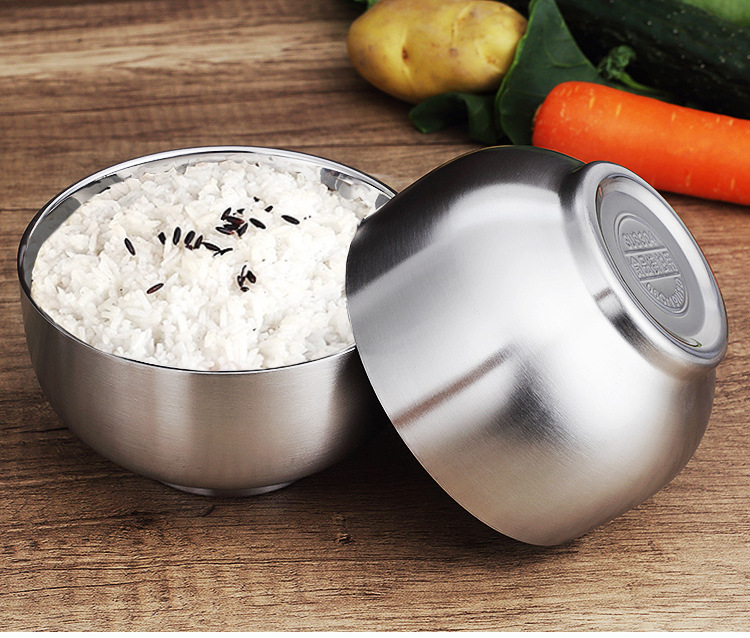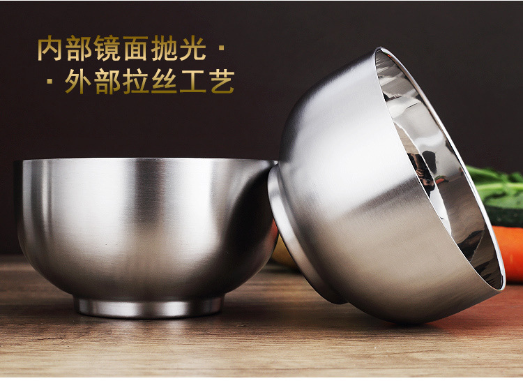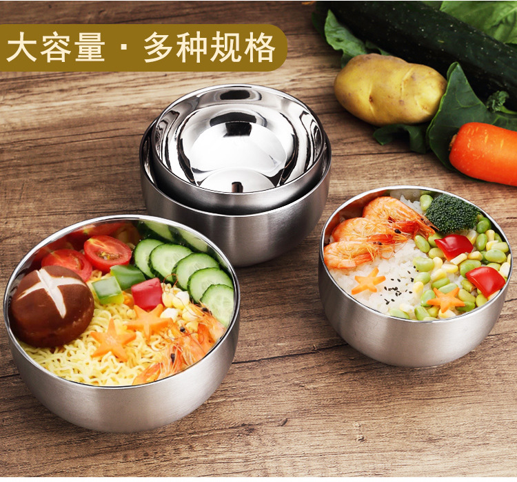 식품 학년 304 스테인레스 스틸 그릇 2 층 그릇 먹는 그릇 두꺼운 가정용 단열 그릇 데우기 방지 한식 그릇 릴리 그릇