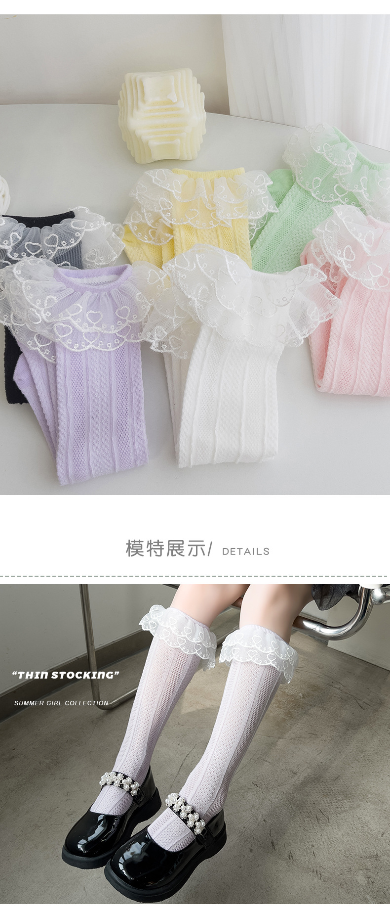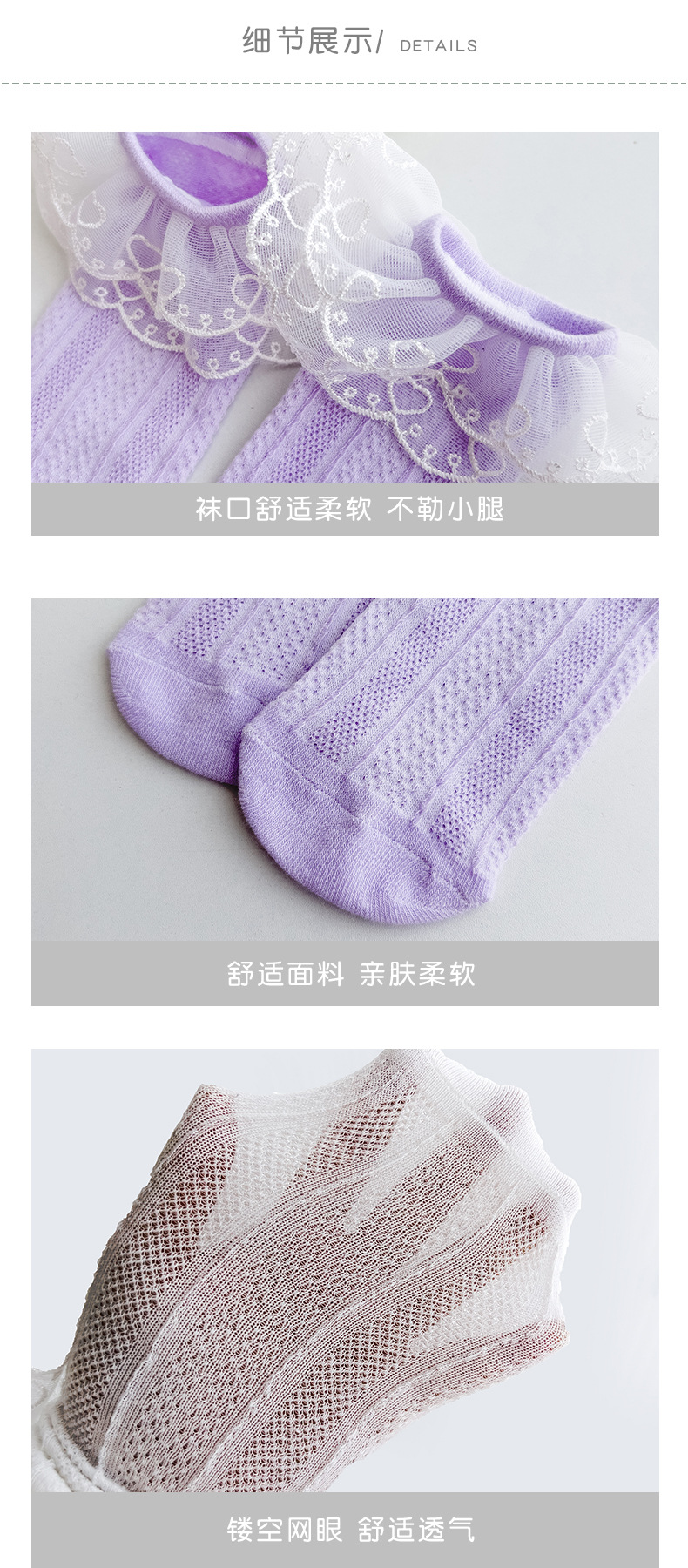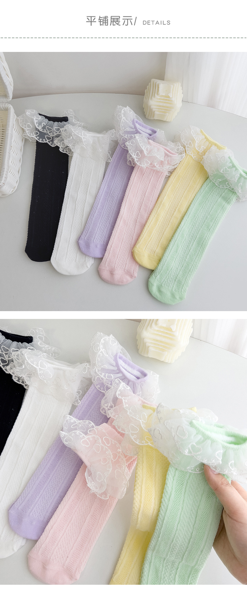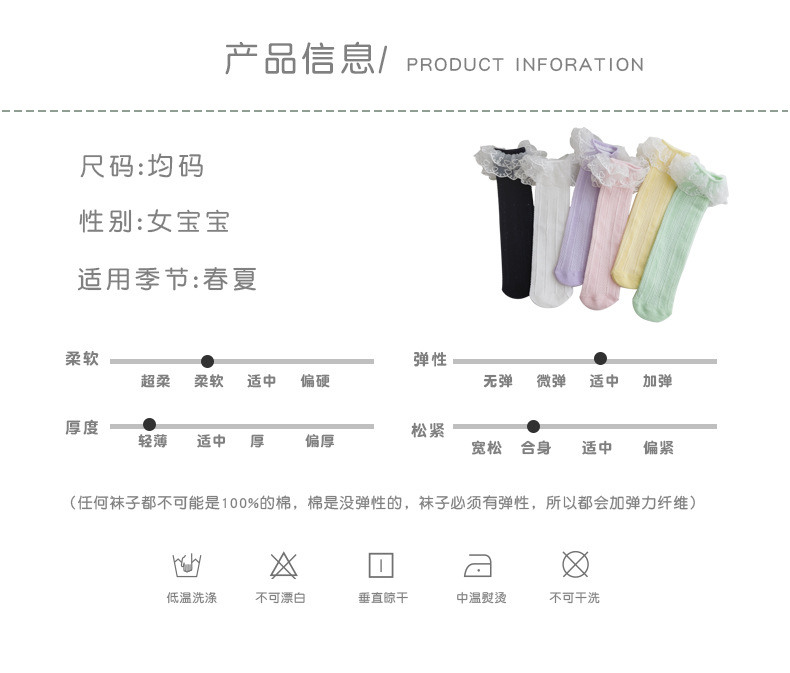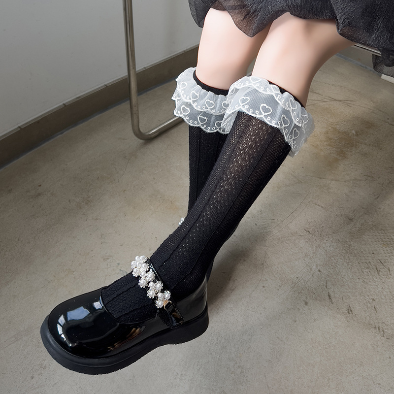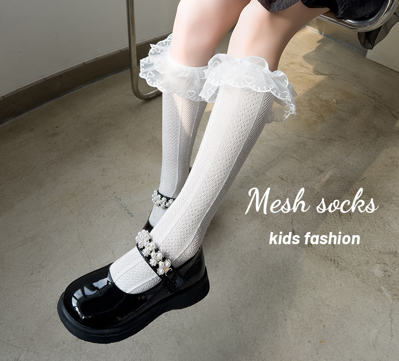 더블 레이스 세로 커프 양말 여자 통기성 메쉬 양말 아기 단색 높은 양말 어린이 양말 봄과 여름스토어 가기