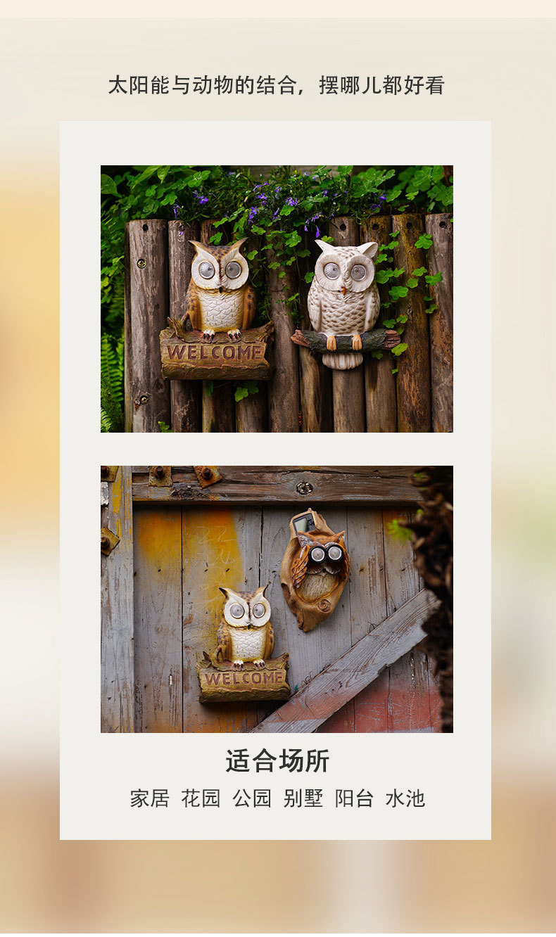 정원 장식 안뜰 발코니 창조적 인 장식품 태양 광 조명 야외 펜던트 올빼미 조명 조경 수지 모델