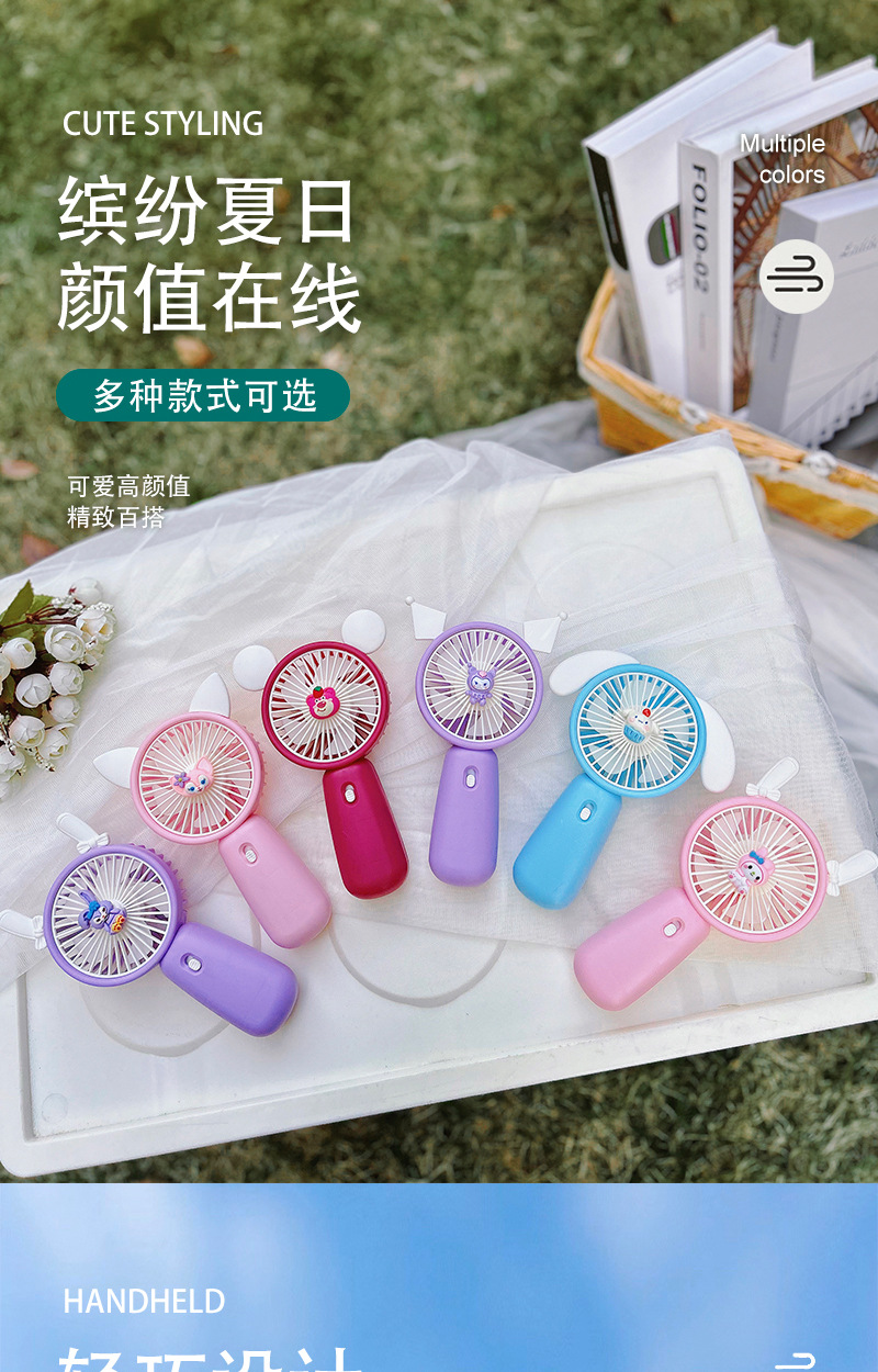 새로운 휴대용 소형 선풍기 usb 충전 만화 미니 음소거 휴대용 선물 로고 크로스 보더 선풍기 도매스토어 가기