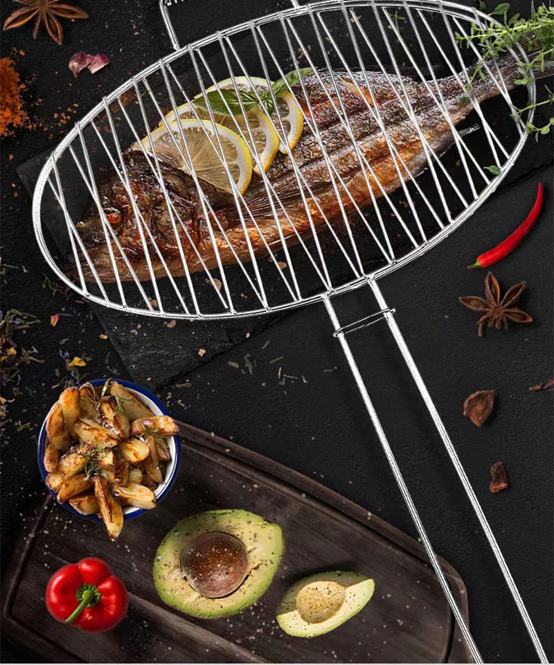 구운 생선 클립 스테인레스 스틸 구운 생선 랙 구운 생선 그물 클립 바베큐 그물 부목 라운드 바베큐 용품 상업용 대형