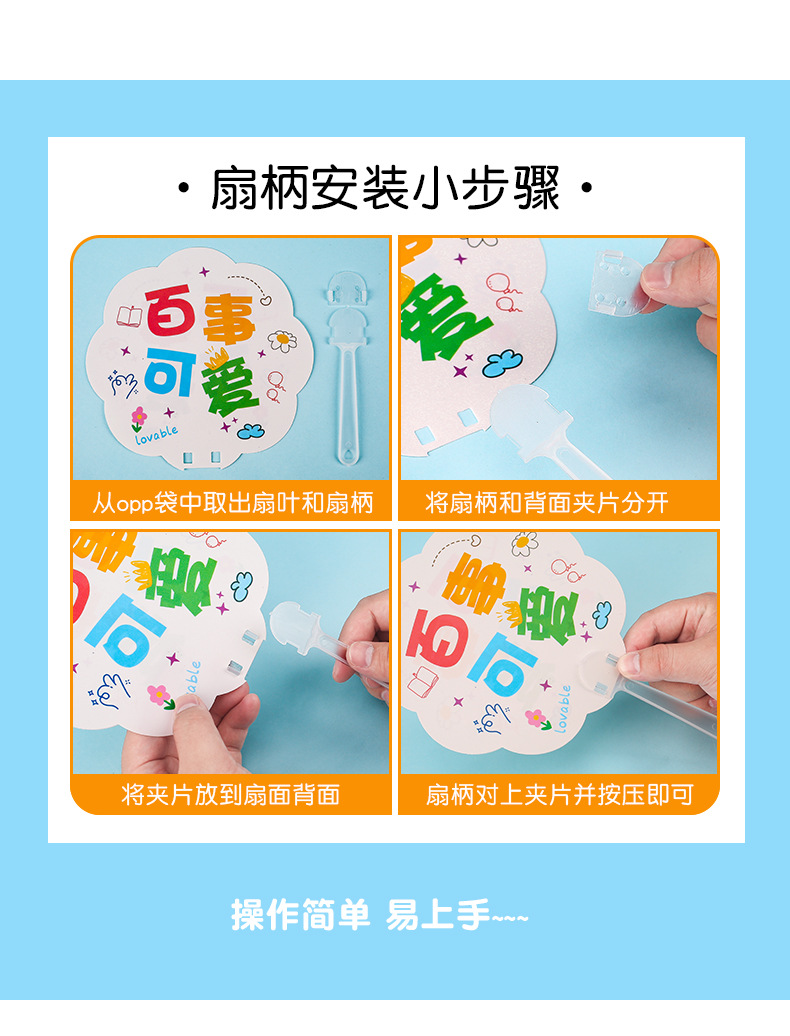 여름 만화 미니 핸드 팬 pp 플라스틱 영감 그룹 팬 핸들 미니 휴대용 광고 팬 도매