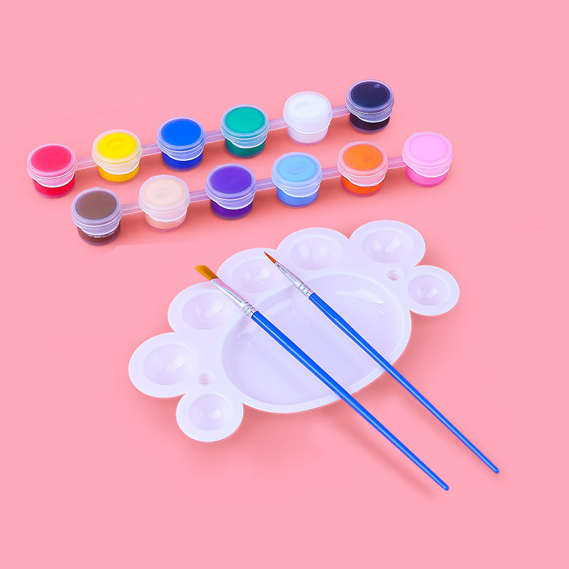 • 12 색 아크릴 페인트 + 2 브러쉬 + 1 플레이트