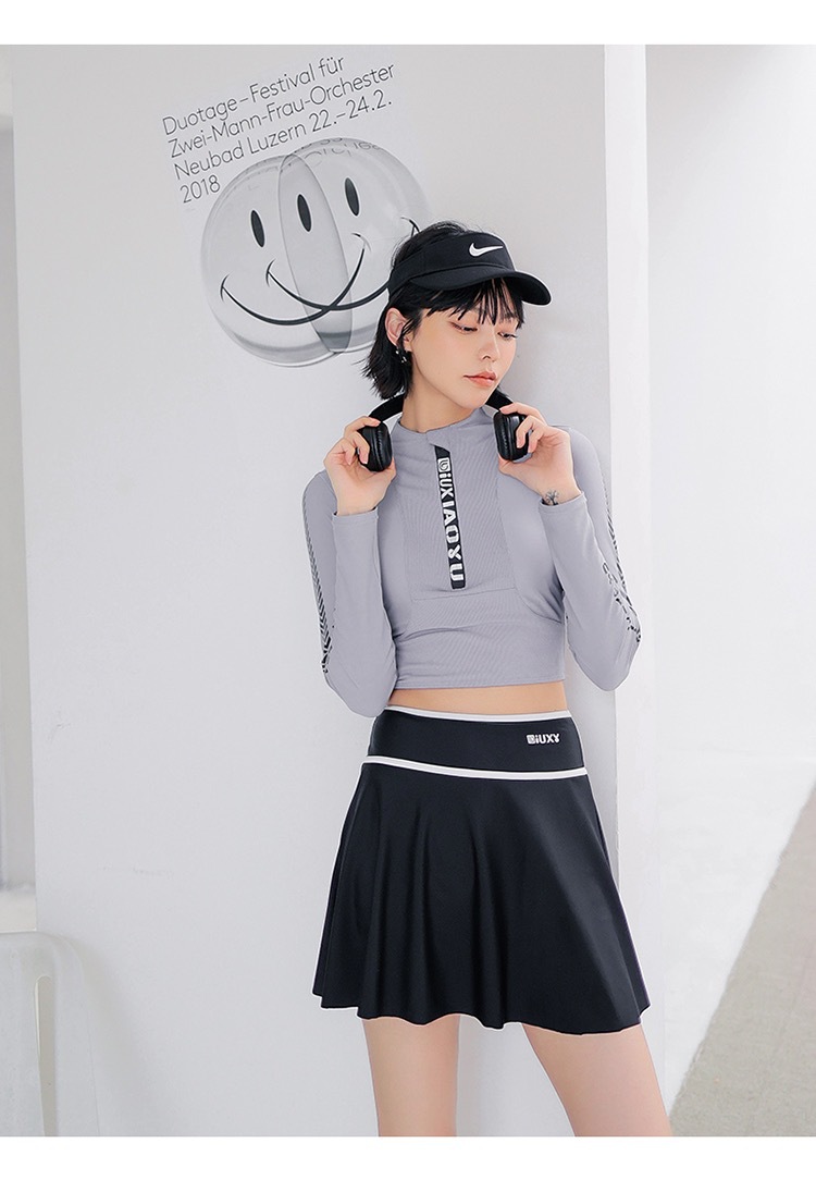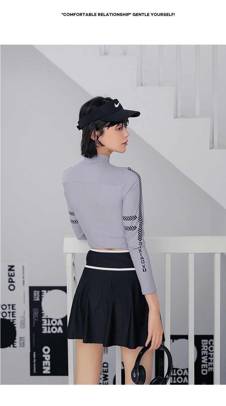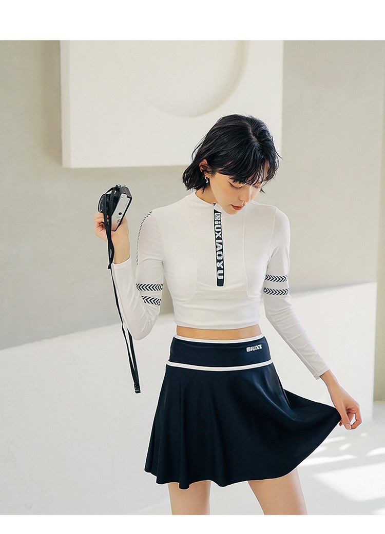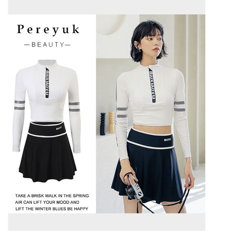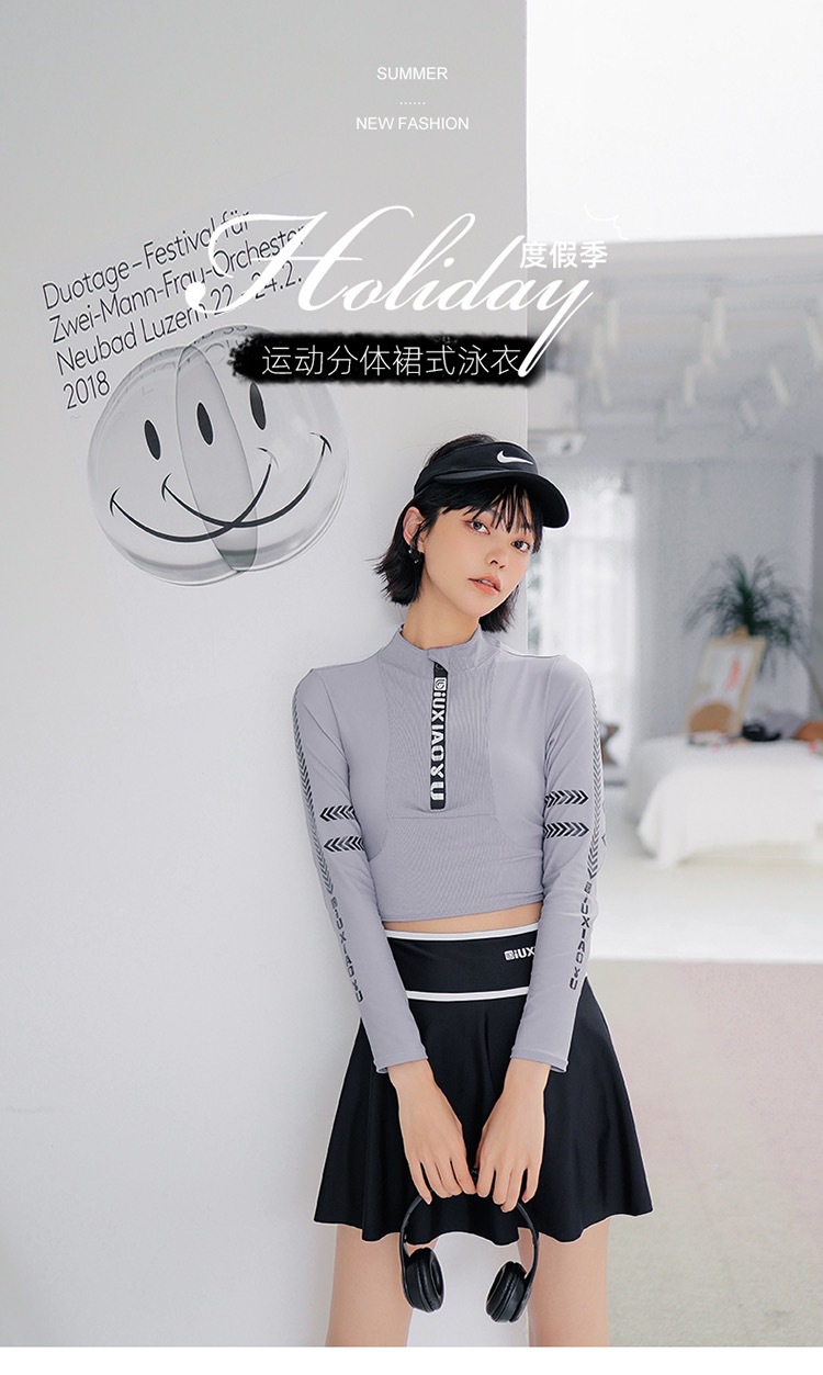 새로운 섹시한 긴팔 스플릿 쓰리 피스 수영복 여성용 자외선 차단제 슬리밍 배꼽 취재 휴가 대학 스타일 온천 수영복스토어 가기