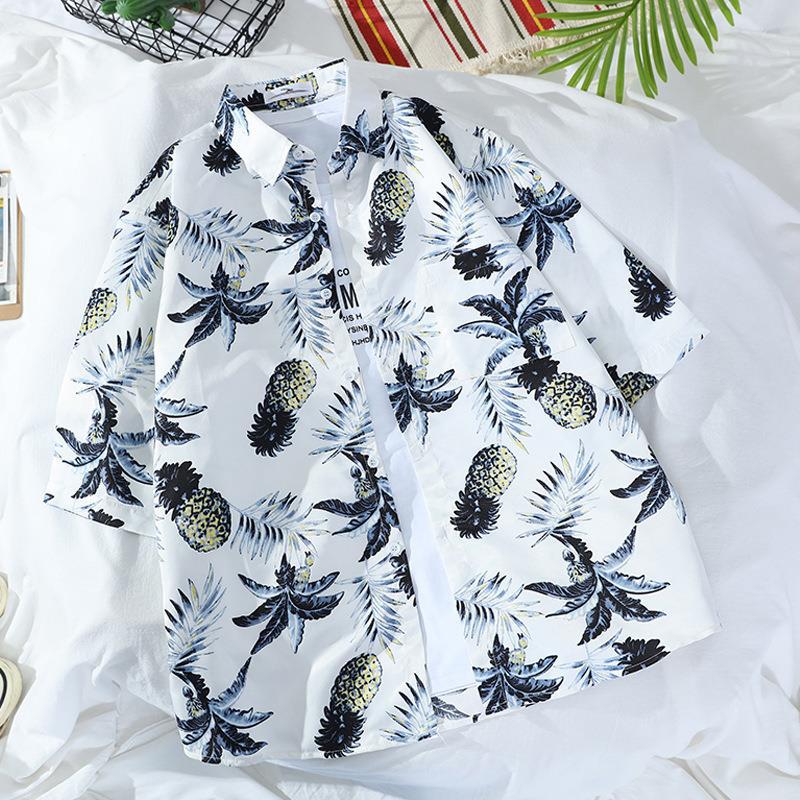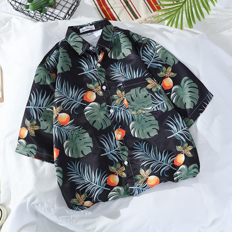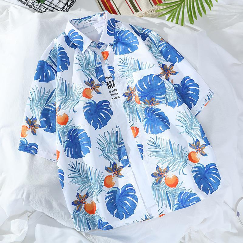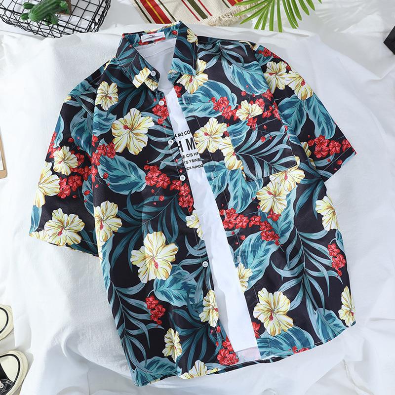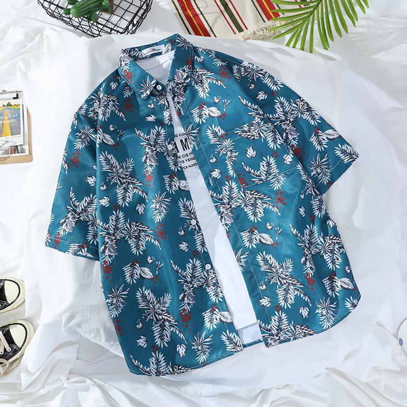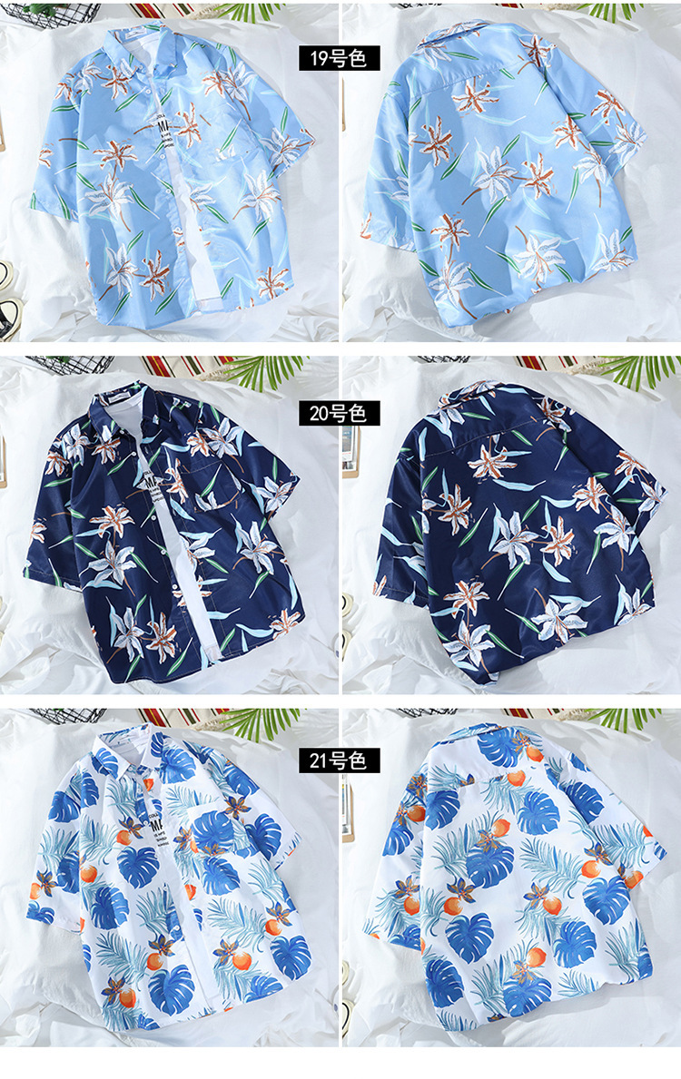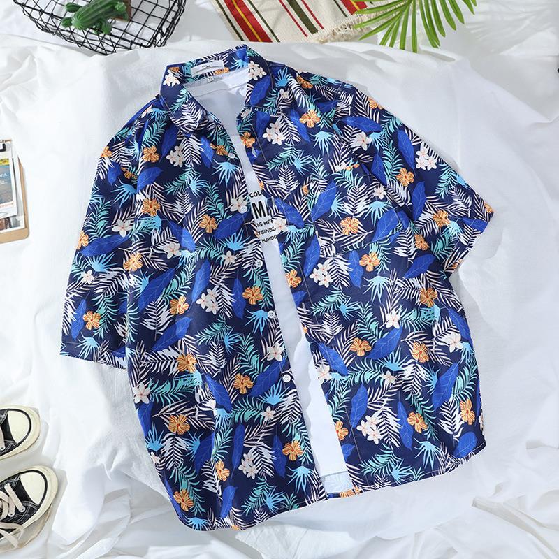 일본 꽃무늬 반팔 셔츠 복고풍 하와이 남성과 여성의 학생 다용도 캐주얼 루즈 비치 셔츠 트렌디스토어 가기