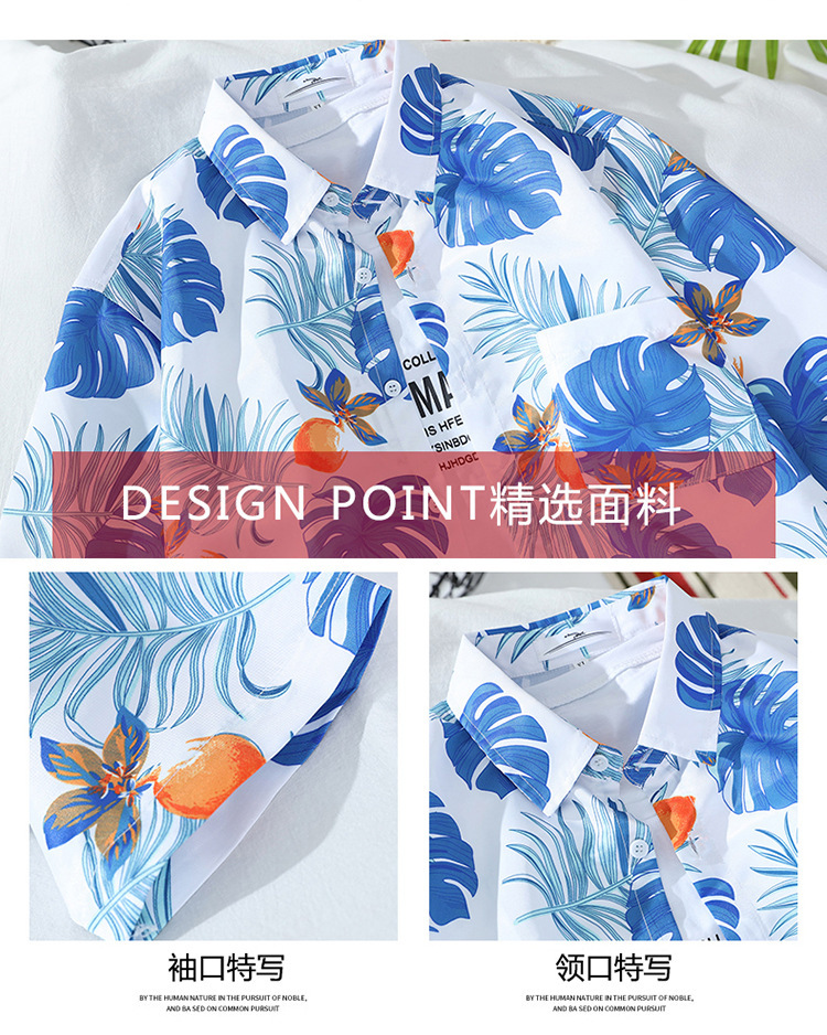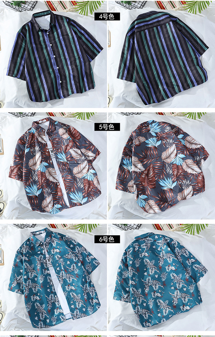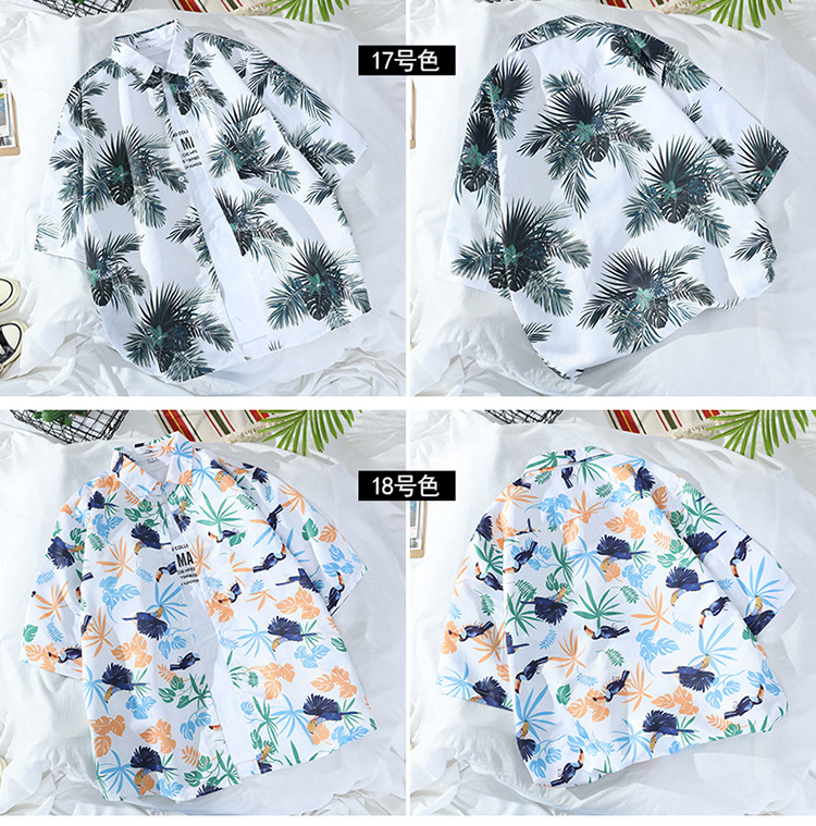 日系碎花短袖衬衫复古夏威夷男女同款学生百搭休闲宽松沙滩衬衣潮